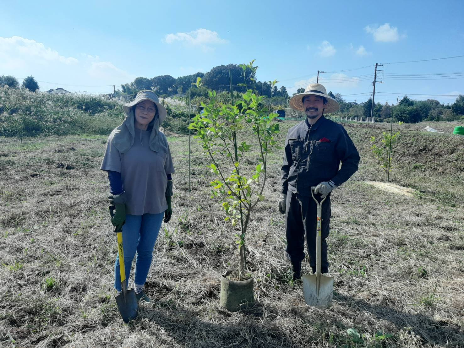 10月28日(土)、植樹会を開きました。この日はとても良い天気に恵まれて、1名のオーナーさんが参加されて手づから植樹しました。ネームプレートも付けて、これからは好きな時に見にいらしていただいて、可愛がっていただきたいと思います。また今年の植樹会に参加できなかった3名のオーナーさんに代わって湘南レモン苗を植樹しました。私共で丁寧に管理しながら、冬を越え、春夏に育ち、実をつけた姿をぜひ見にいらしていただきたいと思います。