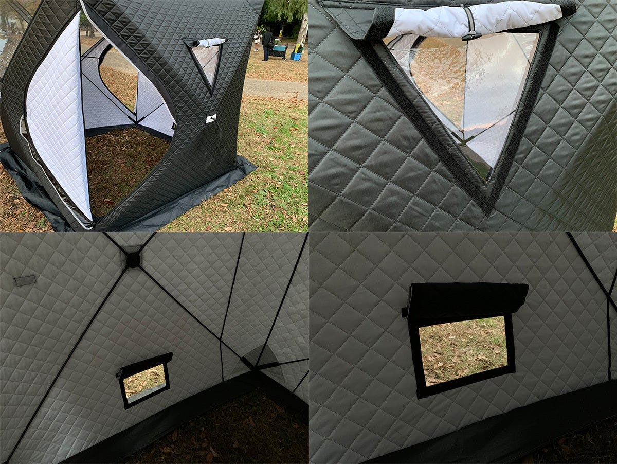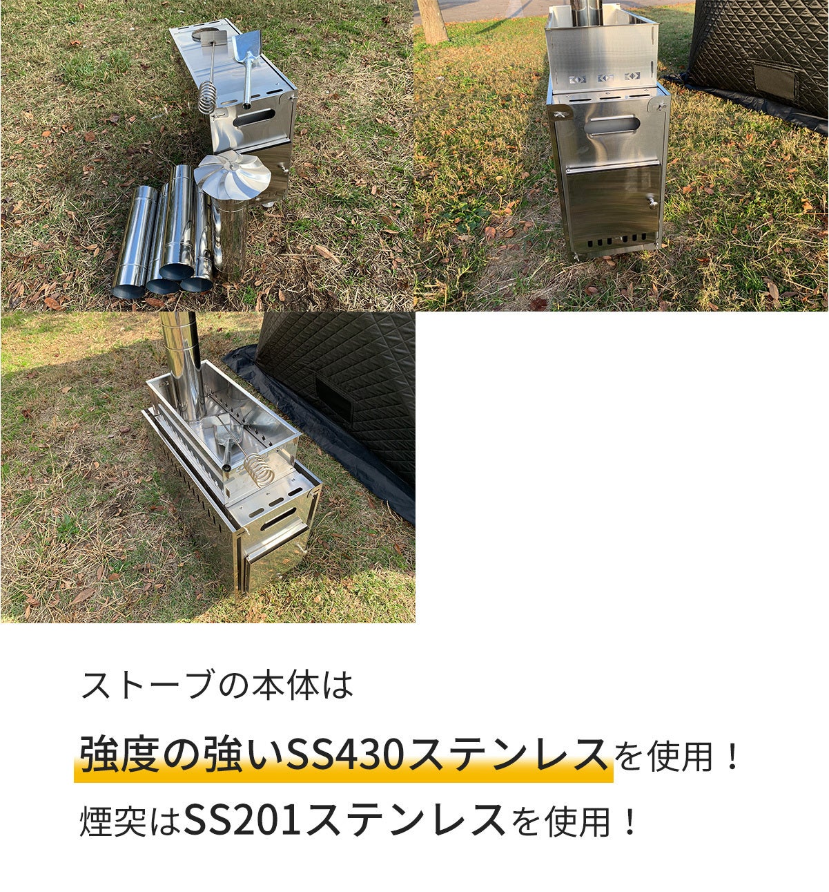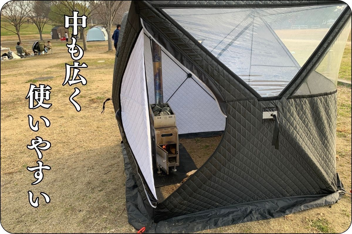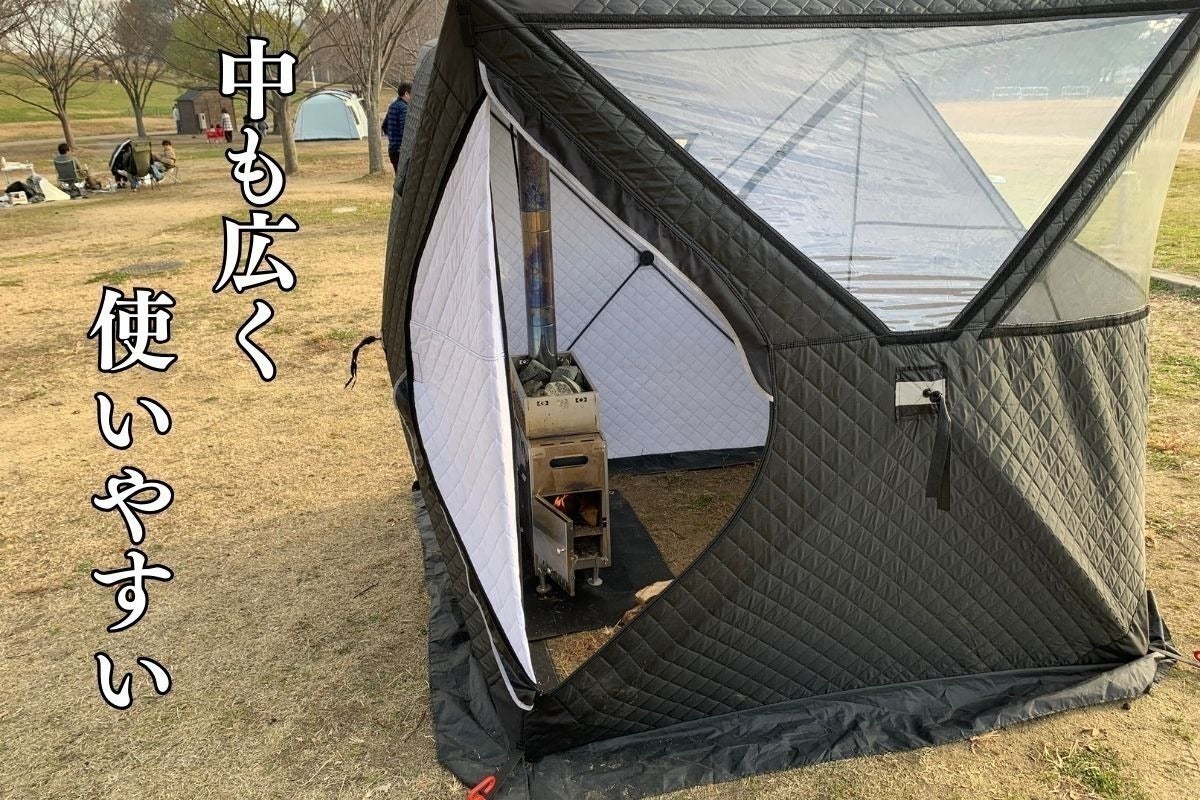 ・テント内は130℃まで高温になる場合があります。一般的なサウナは80~90℃です。温度計をご使用いただき高温になりすぎないように注意してください。