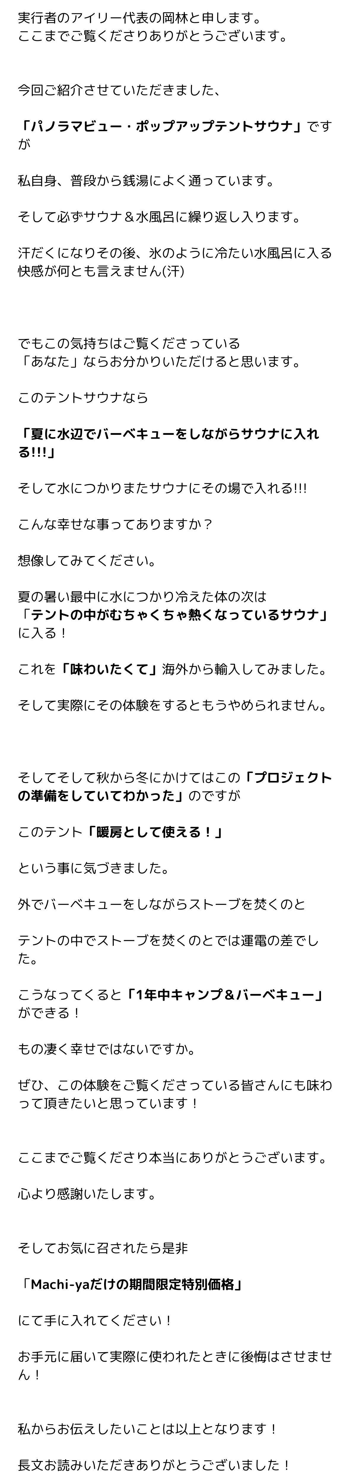 ●その他記載事項:プロジェクトページ、リターン記載欄、共通記載欄(https://camp-fire.jp/legal)をご確認ください。
