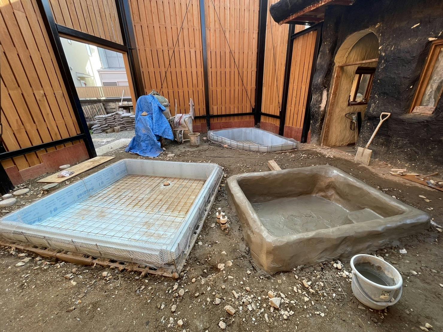 現在、浴槽はまだ防水加工を完了しておりませんが、お湯がちゃんと溜まるか心配ながらも、この新しい試みに大変わくわくしています。