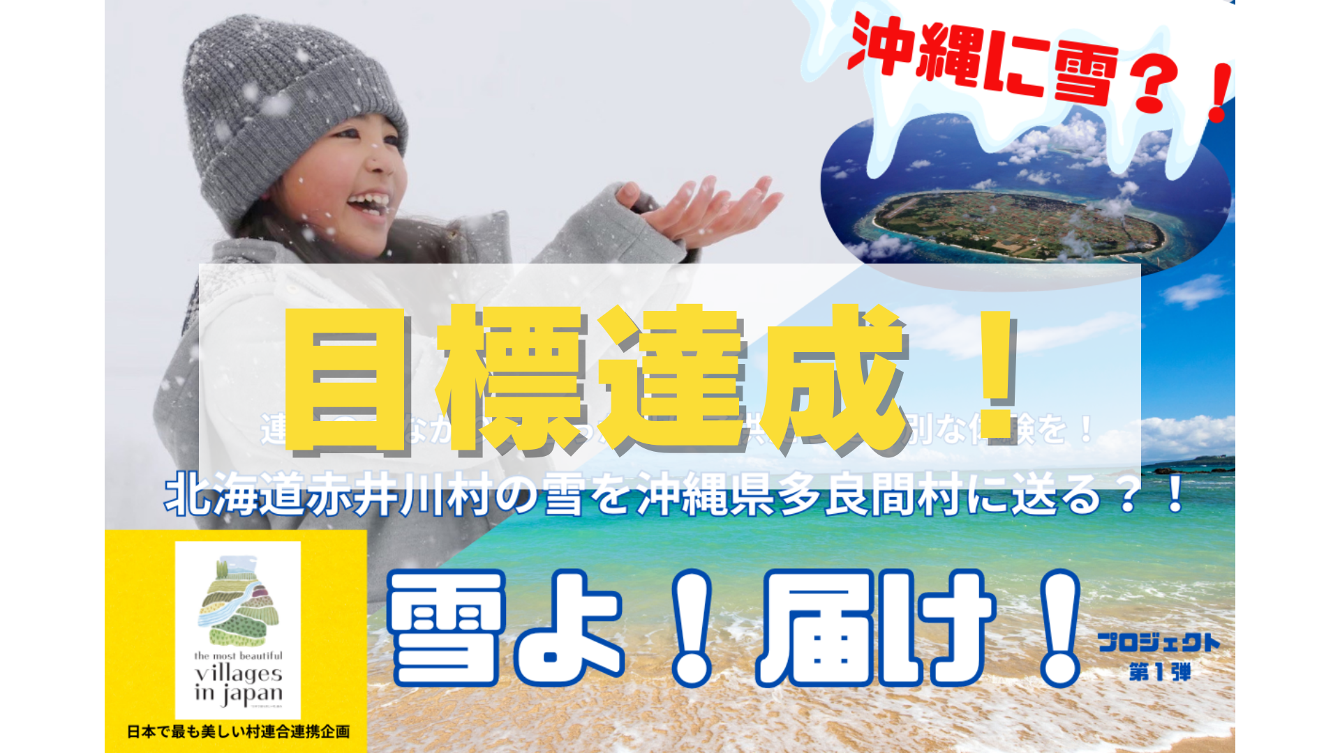 2月20日(火)「雪よ、届け!」本番!約半年にわたる計画もいよいよ大詰め。北海道赤井川村と沖縄県多良間村がつながり素晴らしい1日となりました。赤井川村の雪が多良間村に届き子供たちがどんな顔をするか、ドキドキでした。しかし当日の沖縄県多良間村はなんと、「26度の真夏日」でした。日差しが暑く半袖でないと汗だくになってしまうほどの暑さです。雪を送るには暑すぎてしまった多良間島。それでも「雪よ、届け!」はプロジェクト実行!雪遊びは多良間小学校+幼稚園のみなさんを中心に70名程度の子どもたちに体験してもらいました。子どもたちは、雪を見ると、すぐ「わー雪だー」「触りたーい」と歓声が上がりました。純粋な気持ちが全面に出ていて、目が輝いていましたね。雪に触れると、「冷たーい」や「雪だるま作る」と子どもたちの感情が爆発!みんなが笑顔になって雪で遊んでいました。一番人気だったのは、雪の掛け合い!(雪合戦)ほとんどの子たちが行って、雪を投げ合ったり、体に入れたりと普段できないことを体験して楽しんでもらいました。夏日で当初の予定よりも早く雪が溶けてしまったことは残念でしたが、雪が溶け切るまで遊び尽くしてくれて雪を届けられてよかったと感じました。ちなみに当日のプロジェクトリーダー三島の役割は、いかにして子どもたちの雪にあたるかということでした!しっかりとずぶ濡れになりながら、一緒に楽しませてもらい、子どもたちのエネルギーをもらいました。「こうした笑顔を作るイベントをこれからもしたい」と感じる瞬間で、新しい企画も考えていきたいと思います。赤井川村では須藤さんを筆頭に保育所や地域の皆さんのボランティアのおかげで雪が多良間に届きました。本当にありがとうございます。多良間村では、登さんを中心に役場・学校関係の皆様のご協力のもと雪の運搬をしていただき、子どもたちの笑顔づくりに大いにご協力いただきました。本当にありがとうございます。これを機に多良間・赤井川を、そして「日本で美しい村」連合を知り、次世代に受け継いていってもらいたいと思います。ご支援をいただいた皆様、大盛況で「雪よ、届け!」が終了したことプロジェクトリーダーの三島が責任を持ってお伝えさせていただきます。イベントの活動はこちらで最後となります。(リターン品発送を除く)今日までの間本プロジェクトに関わっていただき本当にありがとうございました。これからも多良間村・赤川村・木曽町、「日本で最も美しい村」連合をどうぞよろしくお願いいたします。