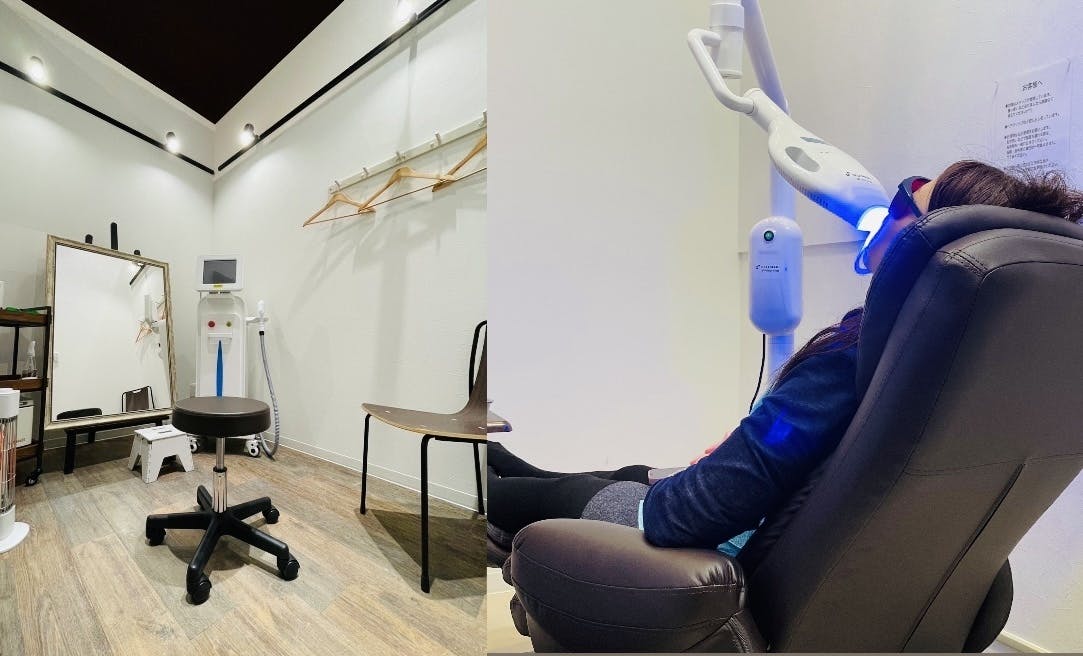 右が当店セルフホワイトニングも取り扱っており、その施術風景になります。
