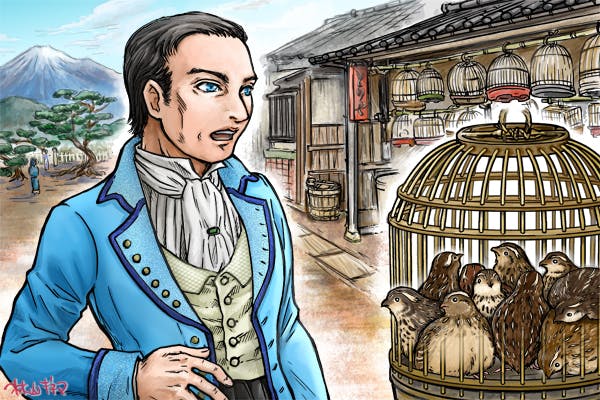 江戸時代後期、うずらは民家の軒先で売られていた。