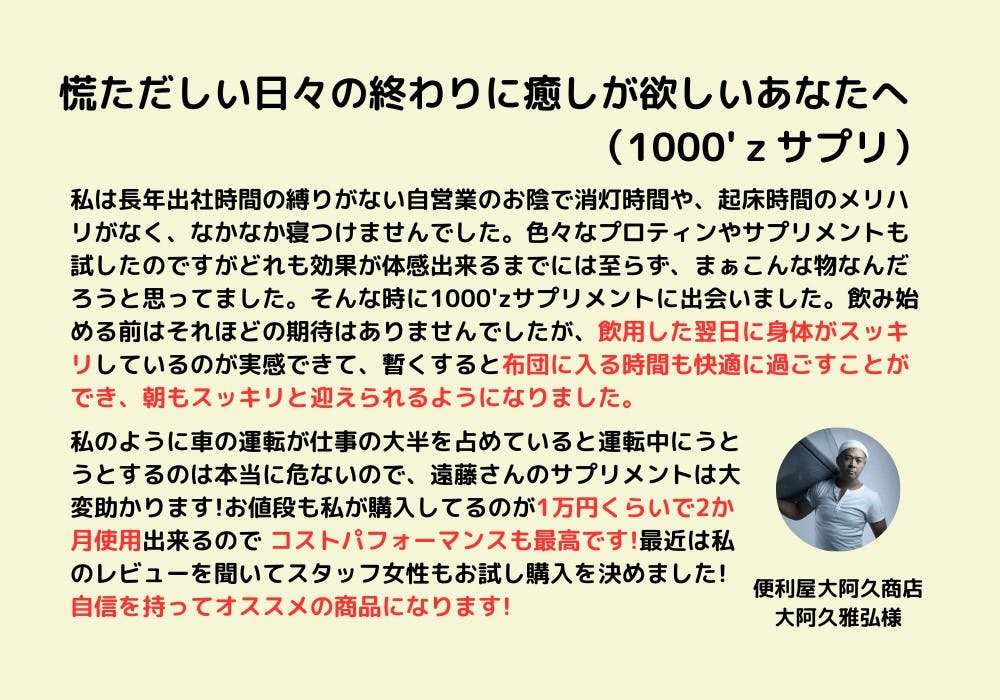 上記でご紹介した「1000'z/366」(サプリ)と私が出演するポッドキャストへの出演権がセットになったリターンです。