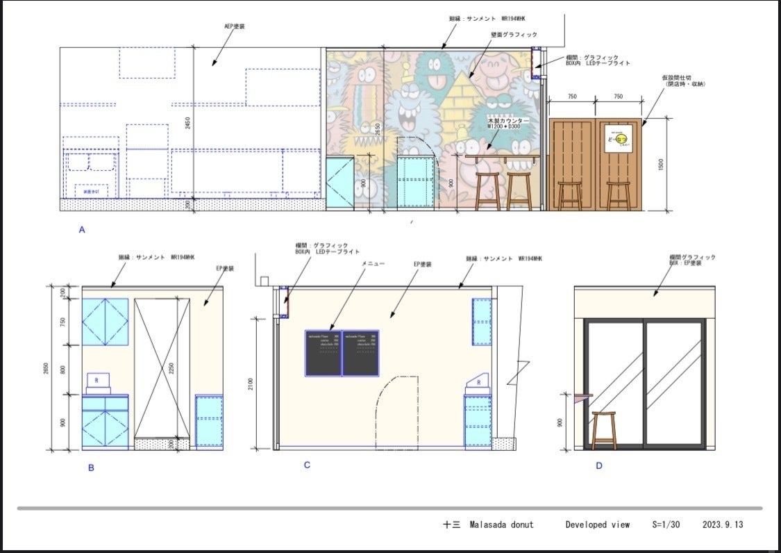 予算内でギリギリ店舗改装費、家賃、機材費など、収まりましたが、賞味期限10分のドーナツ(とろけるマラサダ)の提供をするので店舗内で召し上がって頂きたい、それと来て頂いたお客様とゆっくり交流できる場としてイートインスペースを設ける予定です。