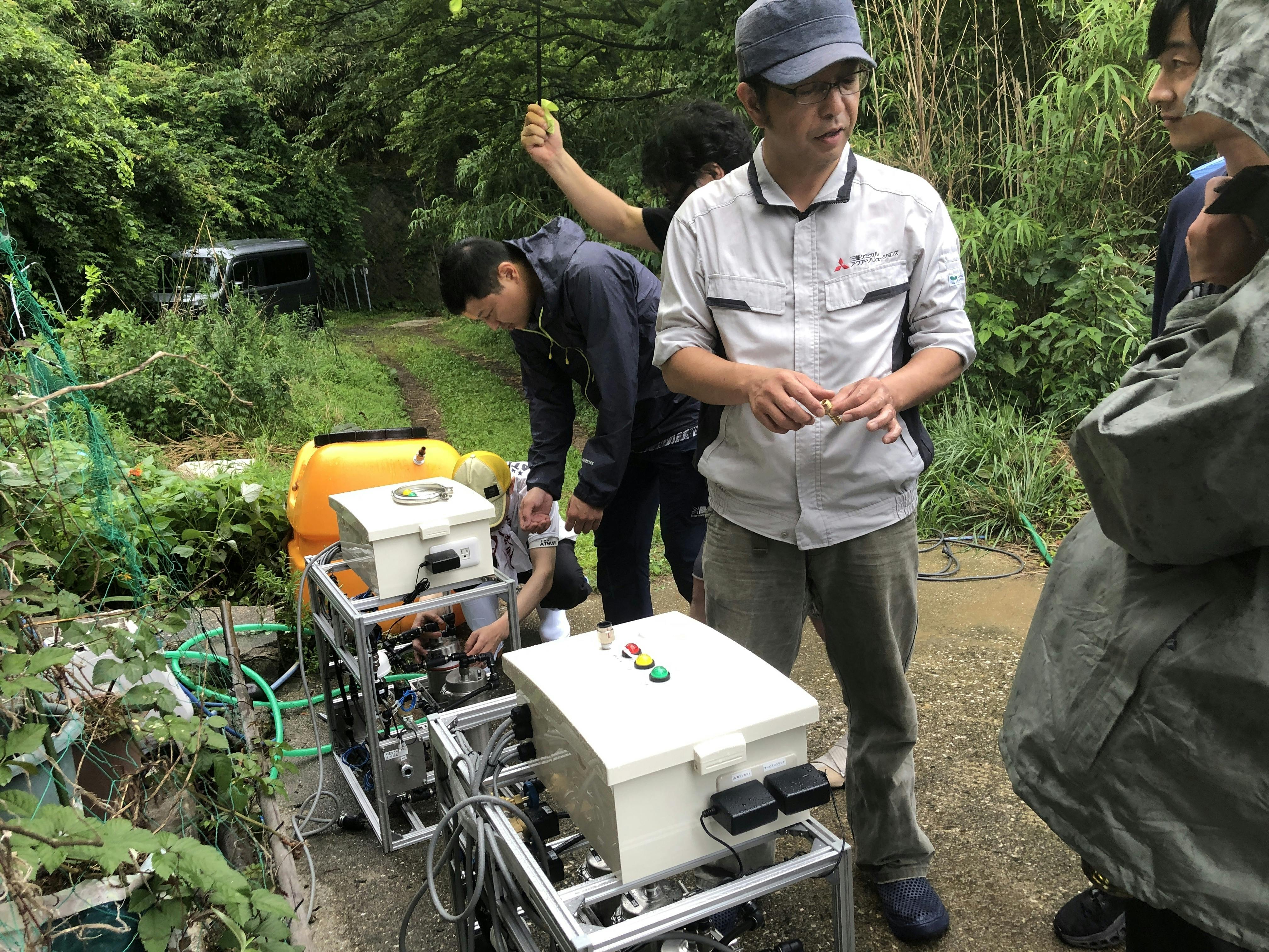 6月に調査、7月に沢の水を汲み上げる装置を設置し、浄水した水が生活用水として使えるかデータを取っているところです。