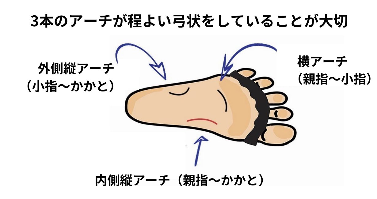歩行時の着地の衝撃を吸収し、推進力に変え、次の一歩を踏み出す役目がアーチで、足の関節の働きです。