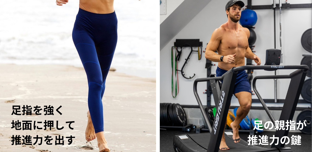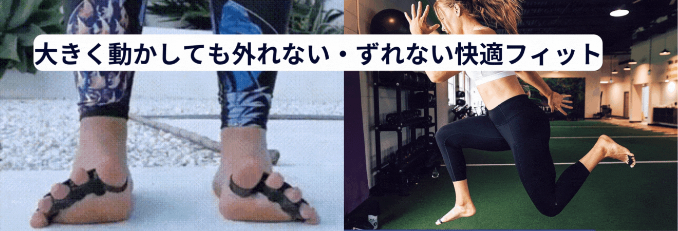足指が下に曲がる動きは、ランニングや歩行でしっかり地面を蹴る力に繋がります。足指を広げることで、安定性、足の筋力、アーチのサポートが向上し、正しい歩き方に。