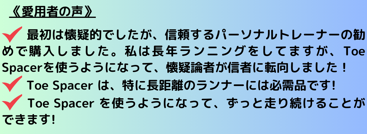 ・長時間の使用で違和感のある場合はToeSpacerの使用を中止してください。