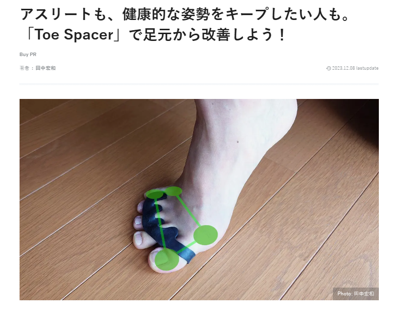 実際に、ライターの方に、Toe Spacer を使っていただき、使用感を記載いただいたものとなります。