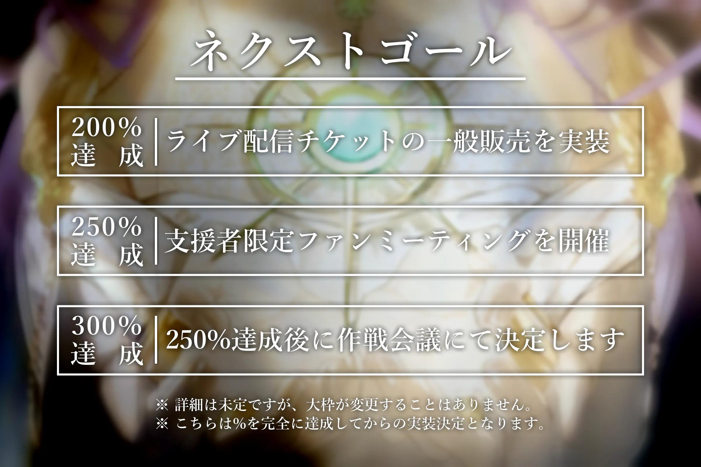 そして早速ですが、YouTube Liveでの作戦会議にて、200%達成以降の「ネクストゴール」を決定しました!