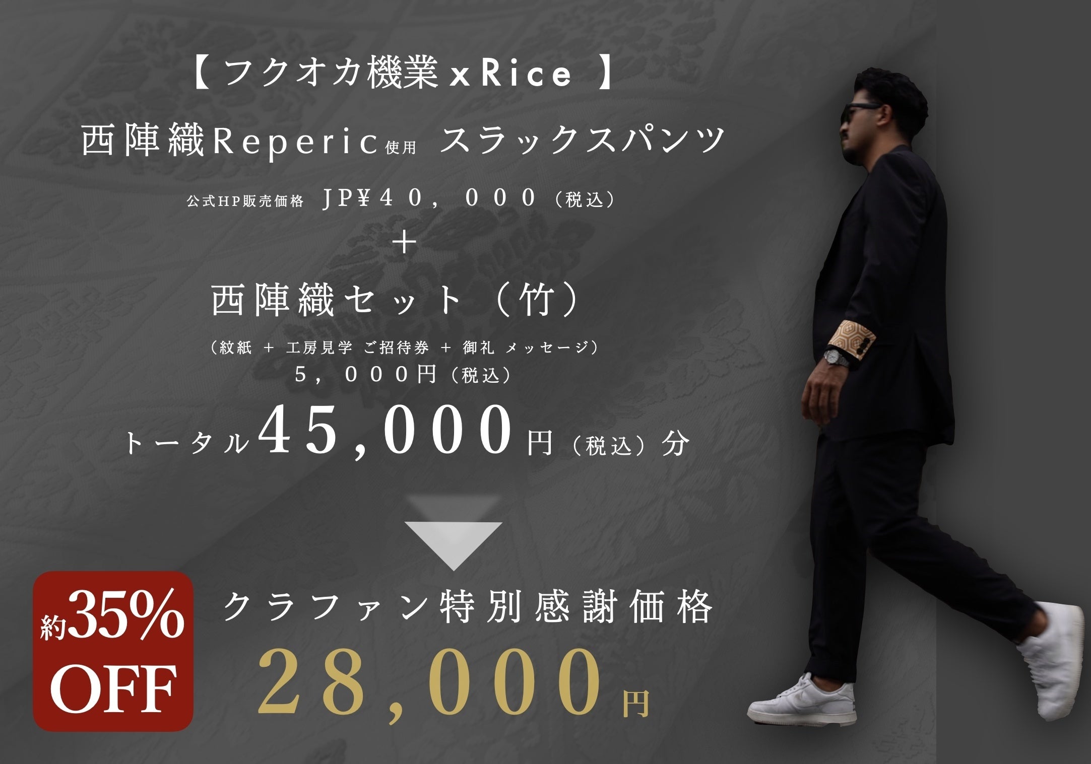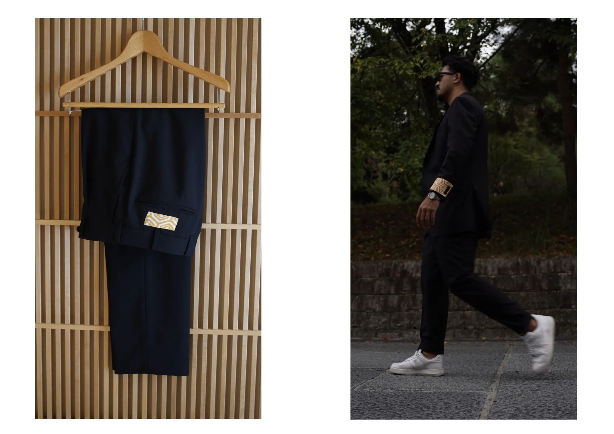 また、今回の《西陣織ジャケット/西陣織スラックスパンツ》は、仕事用のジャケット/スラックスパンツではなく、