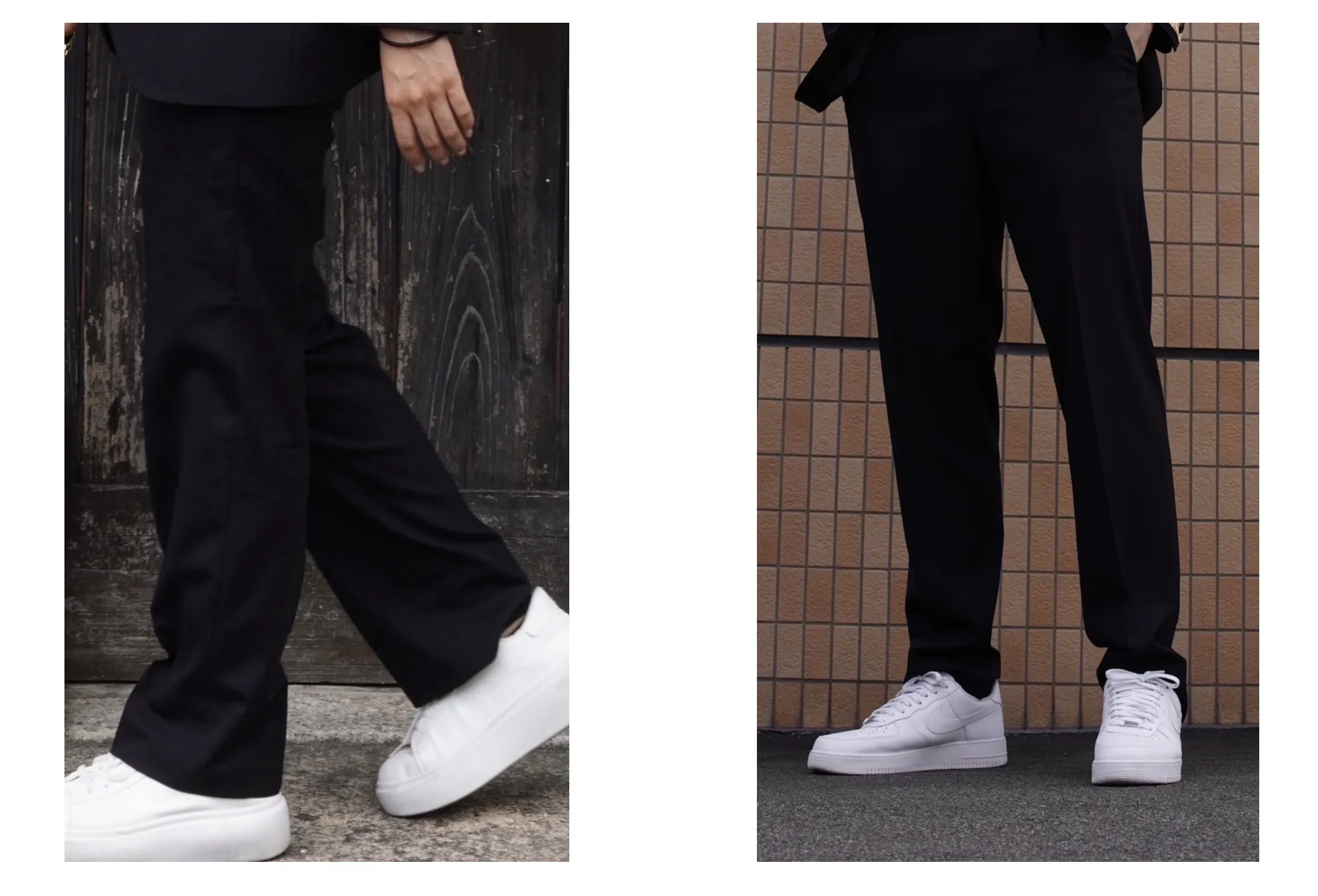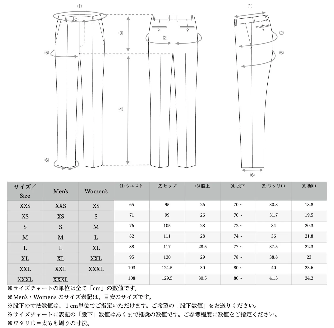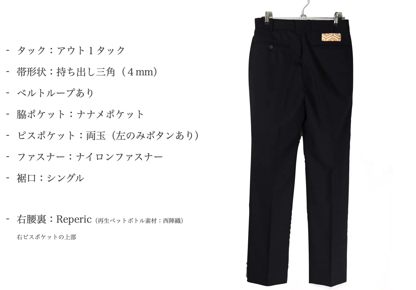 ※上記の写真はスラックスパンツの後方デザインです。前方につきましては、本プロジェクトに掲載の画像をご参考にしてください。