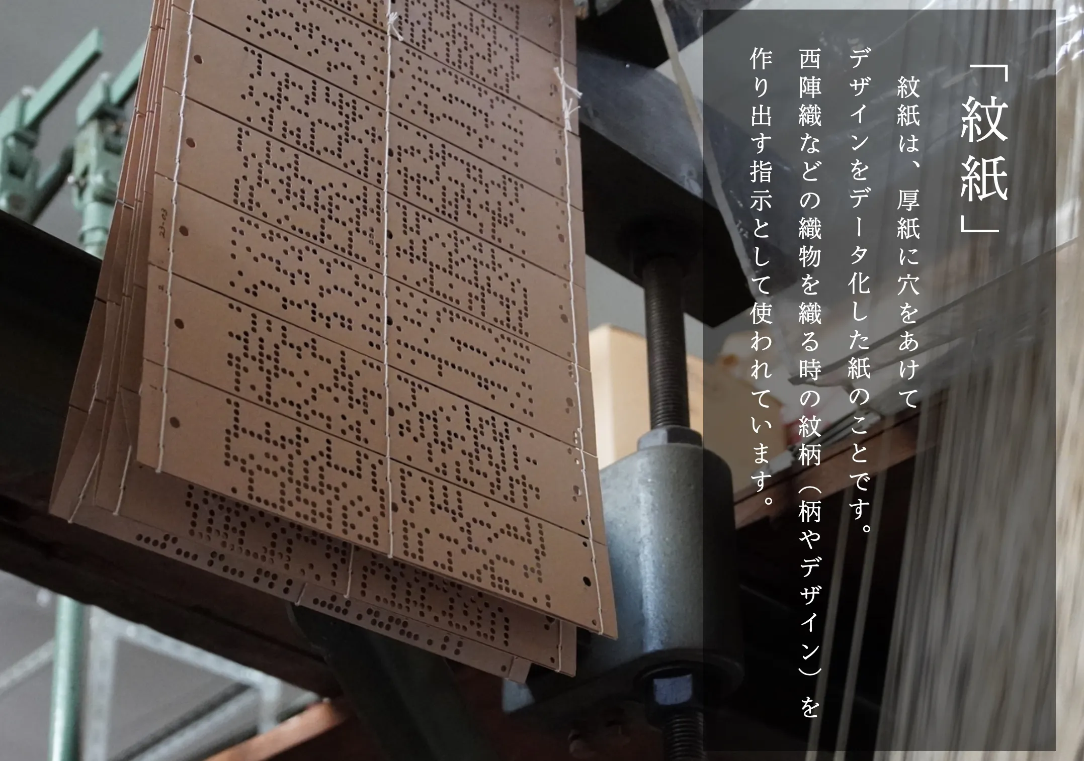 今西陣の職人は高齢化し、若い人にものづくりの楽しさを知って頂き、この仕事に就いて頂きたい思いを持っています。弊社ではやる気のある若い職人が頑張って勉強し、技術を習得していっています。是非工房にも見学にお越し頂き、ものづくりの楽しさを知って頂きたいと思っております。