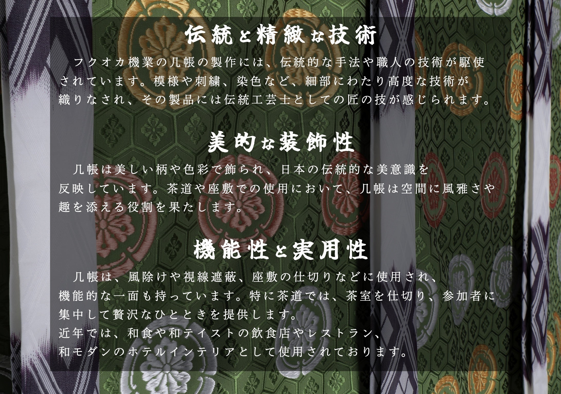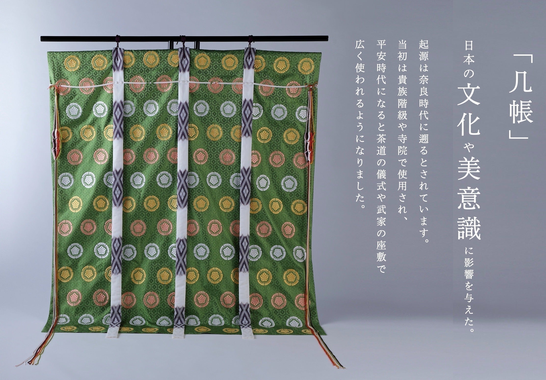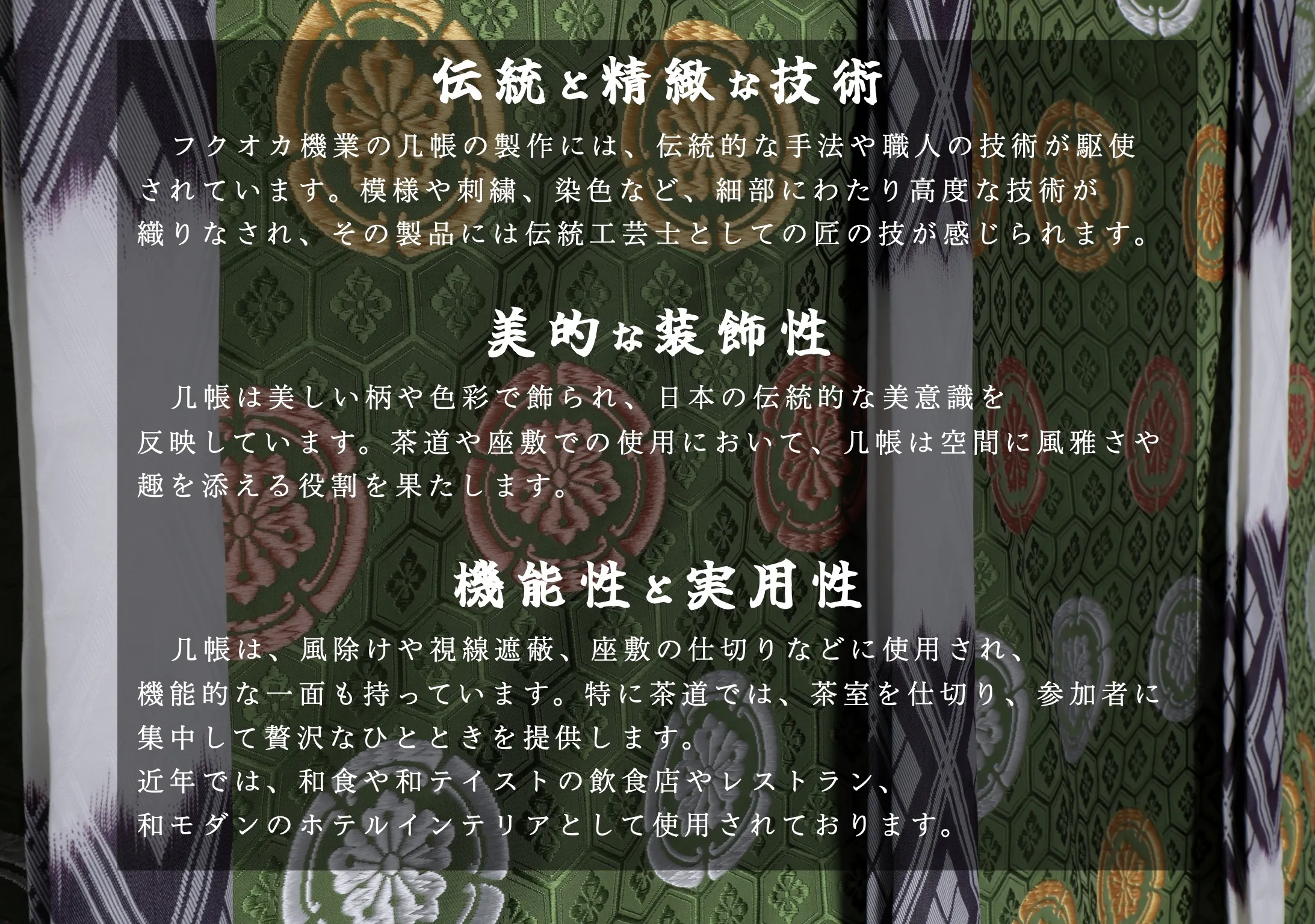 ご家庭で人目を誘う、優雅で気品のある「装飾品」「インテリア」としても楽しんでいただけるようフクオカ機業では几帳をお作りしております。