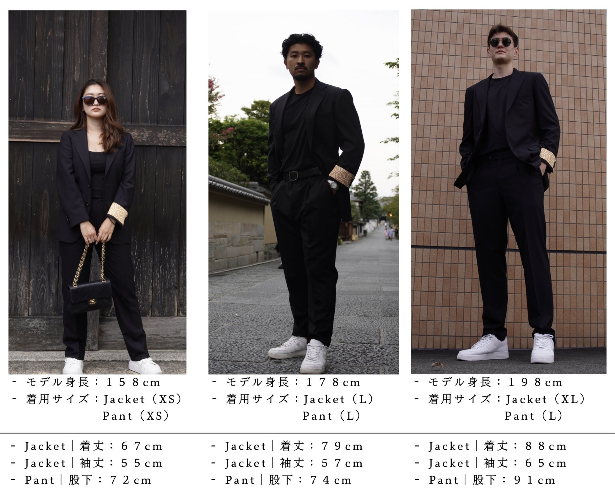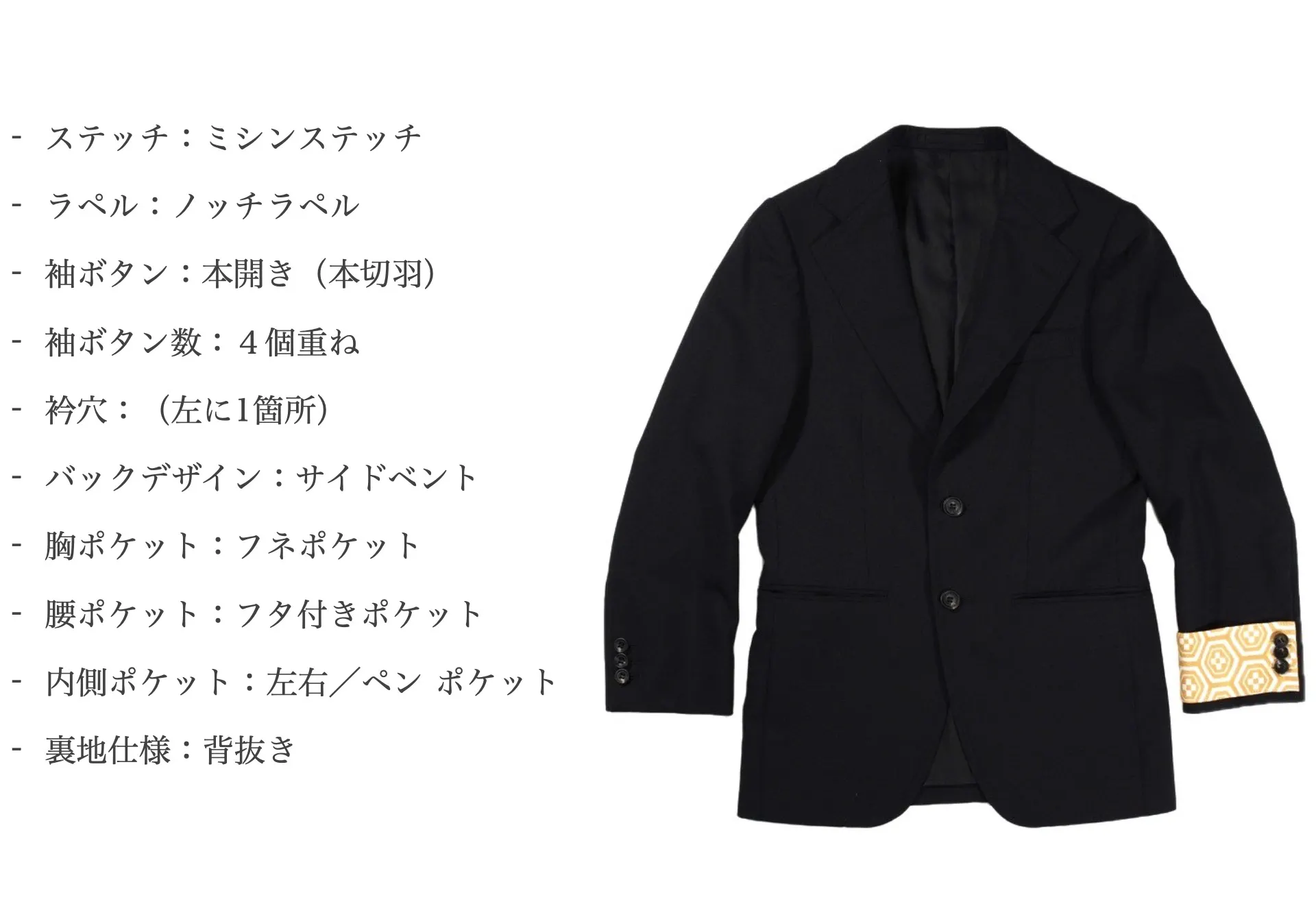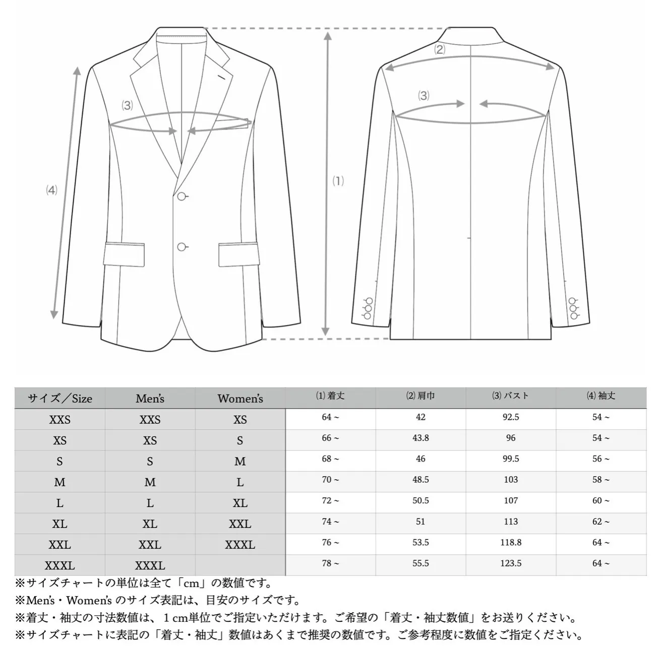 また、ジャケットは[着丈・袖丈]を、スラックスパンツは[股下]を1cm単位で