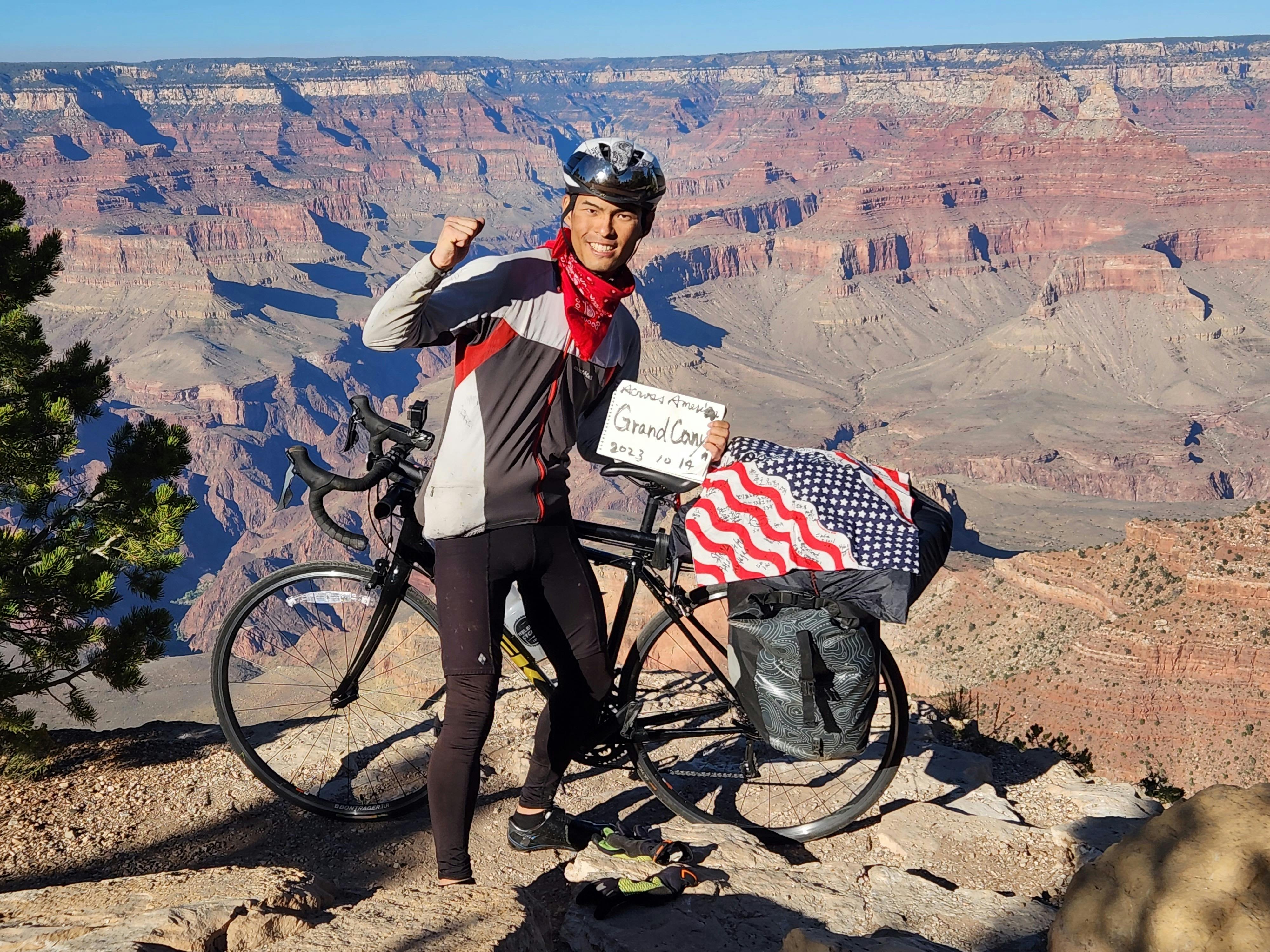 草原と森を北に走りました。ちょうど数十年に一度の金環日食がアリゾナを通過しており、パンク修理をしている最中、太陽が三日月型になるのがチラチラと確認できました。森を抜けると突然、遥か巨大な大峡谷が現れました。夢を信じ続けて、自分の足で今こうしてたどり着いたことが、とても感動してしまいました。夜はカイバブの森にテントを張り、寝ました。完全防備で挑みましたが、朝方は寒さで凍えました。それでも朝日と共にテントが暖まり、目が覚めると「今日も生きてる!」って実感できました。