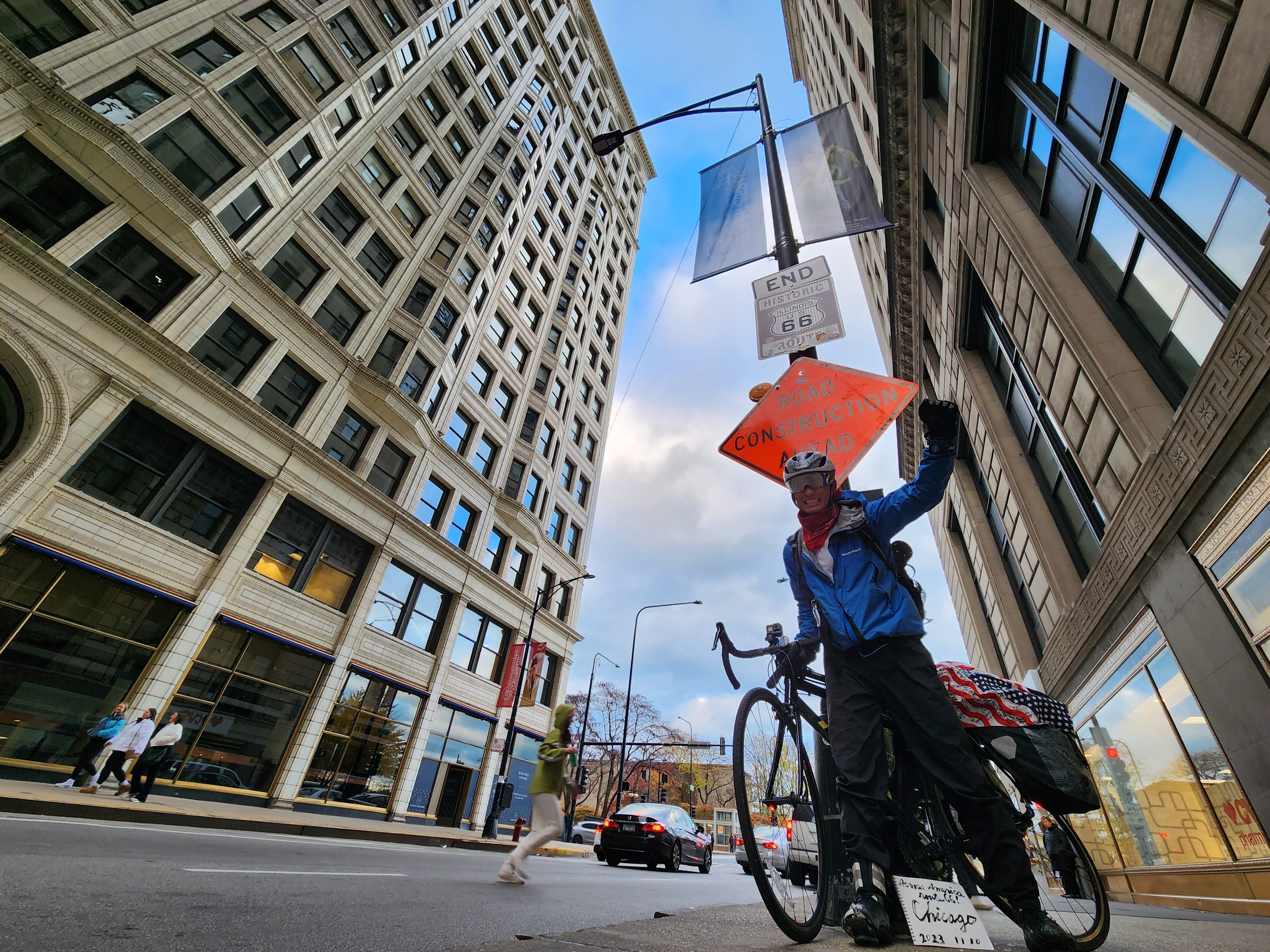 風が強く寒い1日でした。道を間違えたり、交通量が増えて大変でした。しかし遠くにシカゴの高層ビル群が見えた時、絶対に事故なくたどり着くぞ!とやる気がみなぎりました!そして高層ビル群の間を抜けて、route66ENDの看板が見えた時、一つ大きな目標が叶ったことに心が奮えました!