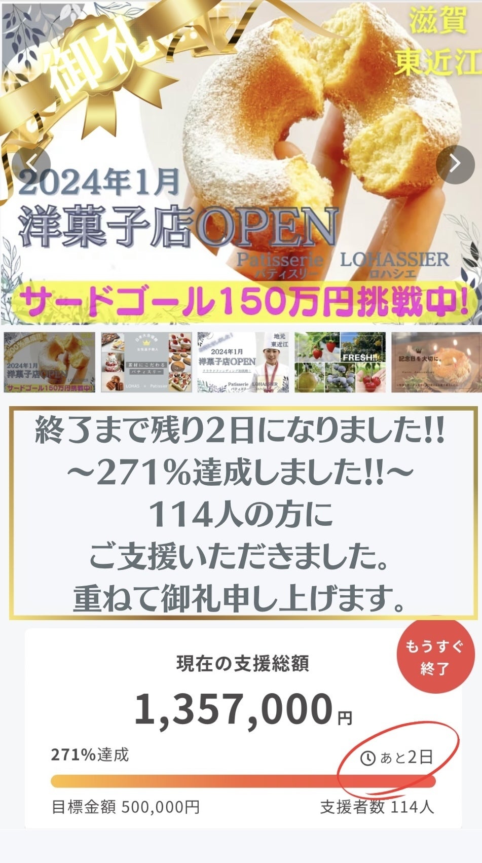おかげさまでサードゴール目前までご支援していただくことができました。