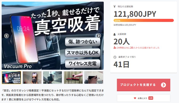 この度は「1秒でガッシリ自動固定!ワイヤレス充電対応の真空吸着式スマホホルダー【VACUUM PRO】」に支援頂き誠にありがとうございます!