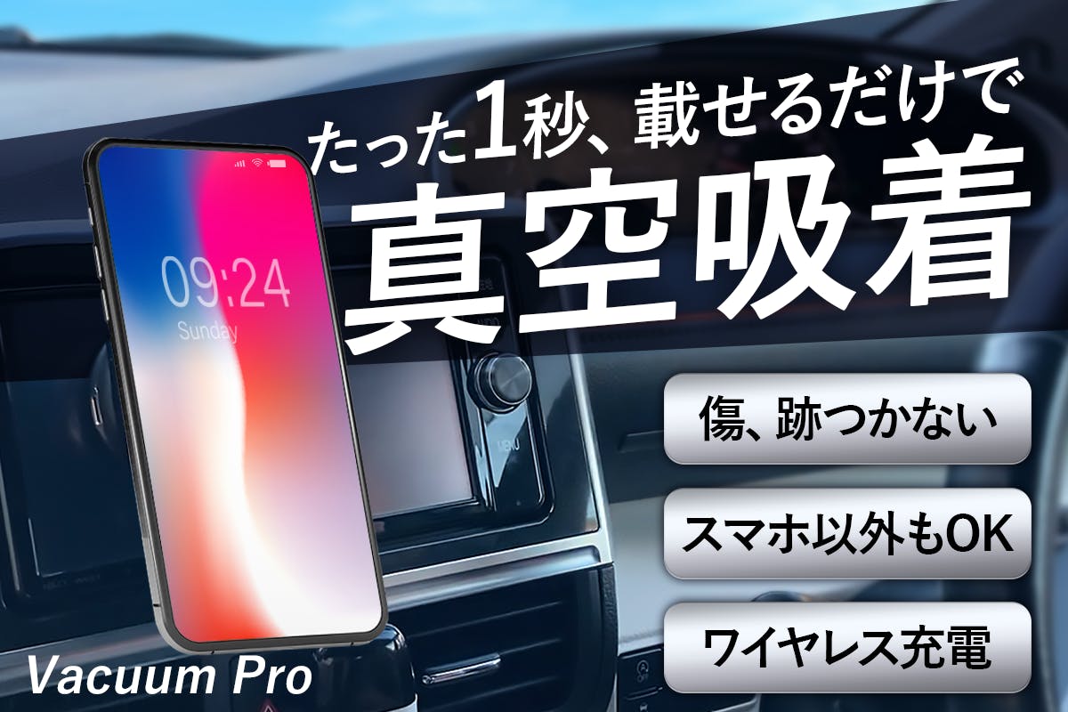 1秒でガッシリ自動固定!ワイヤレス充電対応の真空吸着式スマホホルダー【Vacuum Pro】