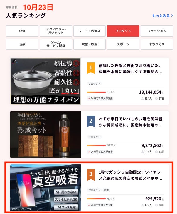 また本日(10月23日)のCAMPFIREランキングプロダクト部門で3位に入賞することが出来ました!