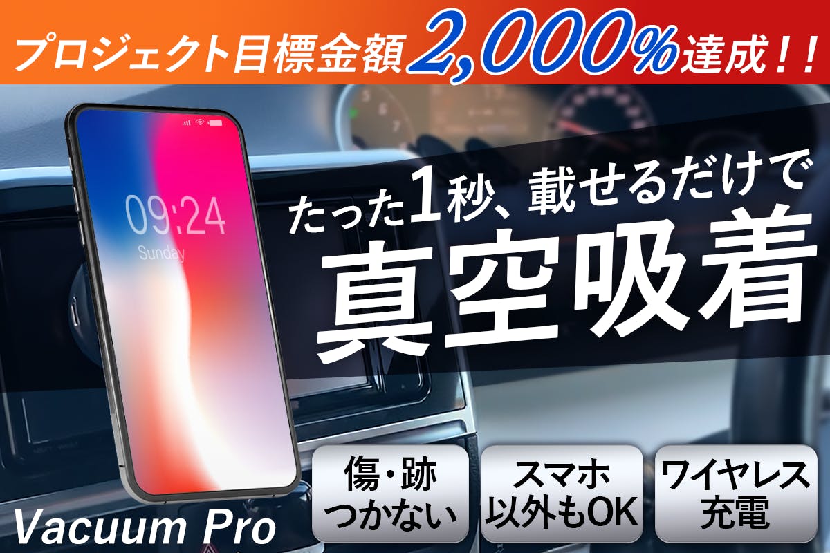 1秒でガッシリ自動固定!ワイヤレス充電対応の真空吸着式スマホホルダー【Vacuum Pro】