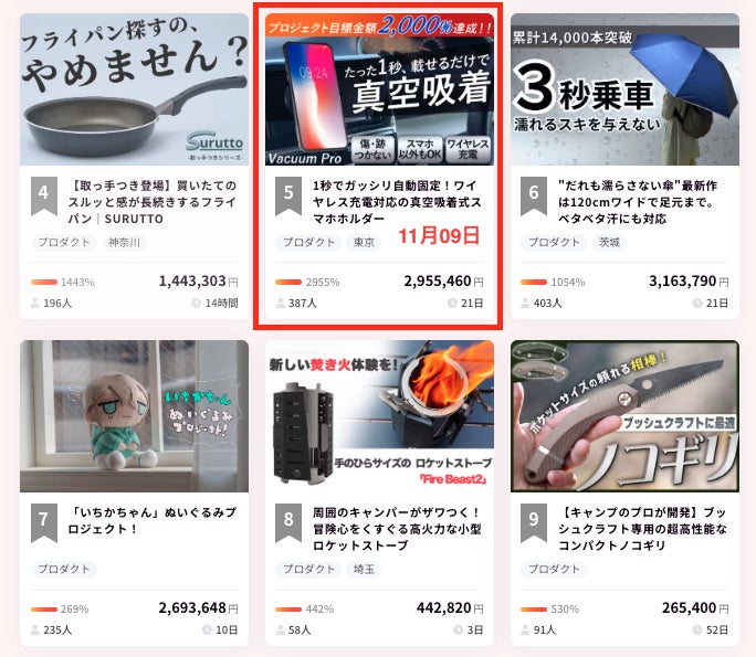 また本日 (11月9日) のCAMPFIREランキングプロダクト部門で5位に入賞することが出来ました♪