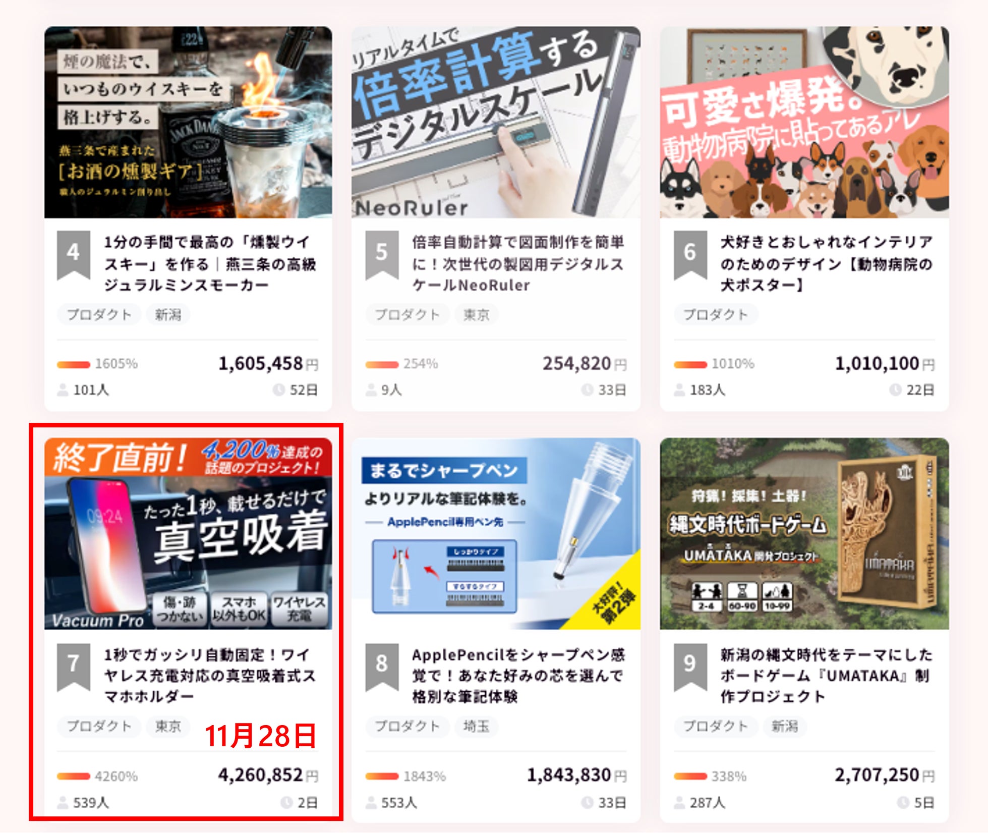 また本日 (11月28日) のCAMPFIREランキングプロダクト部門で7位に入賞することが出来ました♪