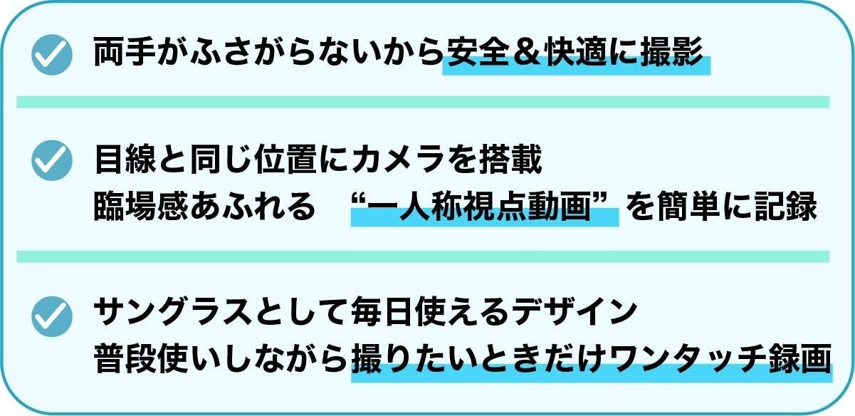 あなたの目が、そのままカメラになる。ワンタッチで簡単録画【スマートカメラグラス】