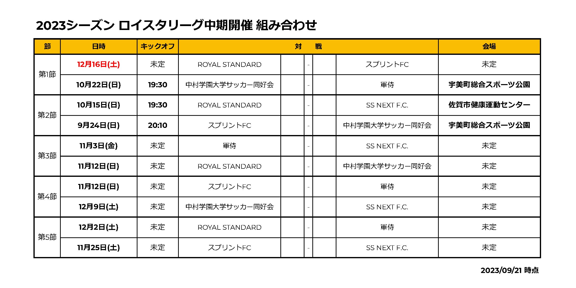 2023年09月24日 :「2023ロイスタリーグ中期開催」開幕~12月16日まで開催期間。