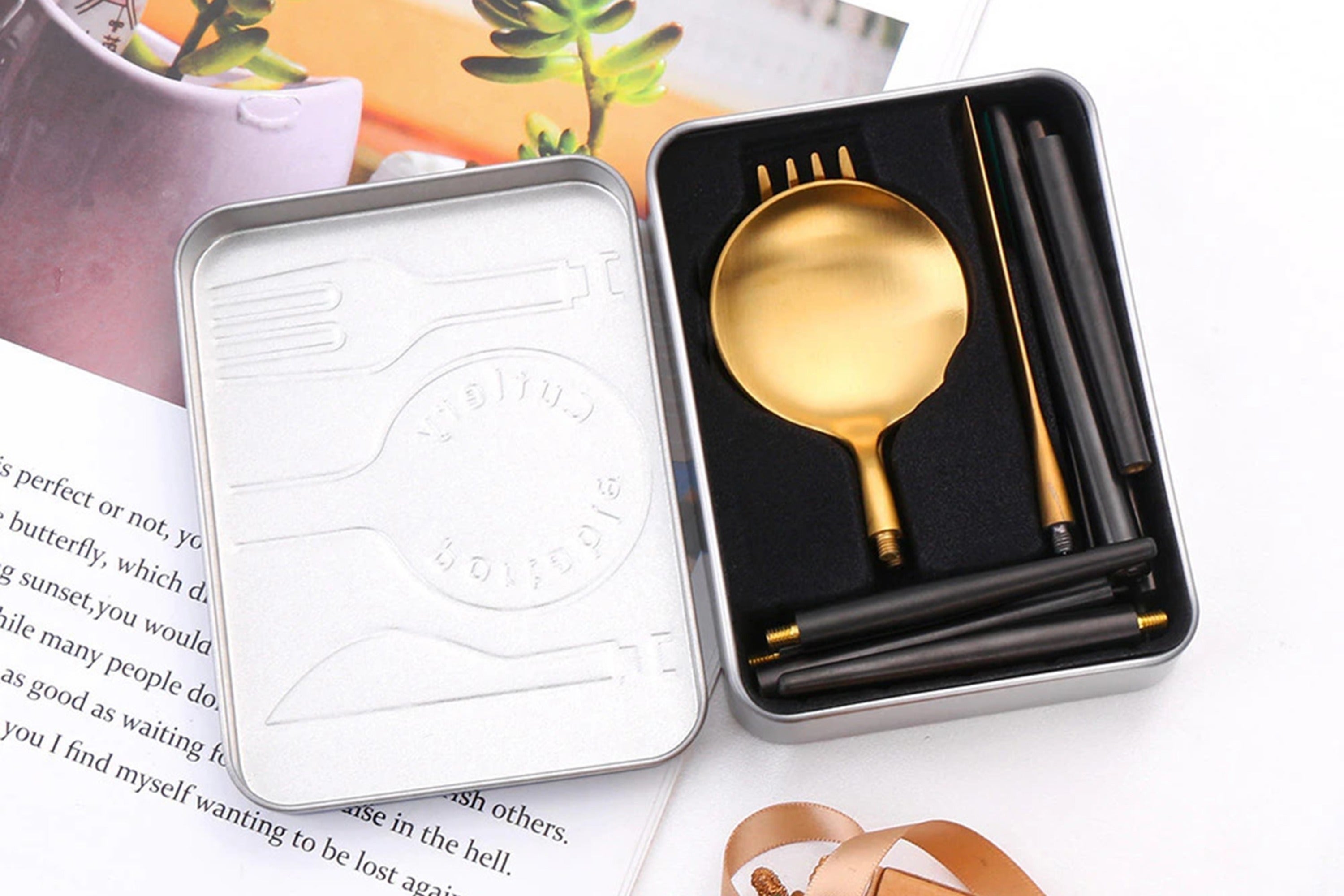 全能Myカトラリーは再利用可能で、清潔さを保てるステンレス鋼製。使い捨てプラスチック製品の使用を減らし、環境保護に貢献します。