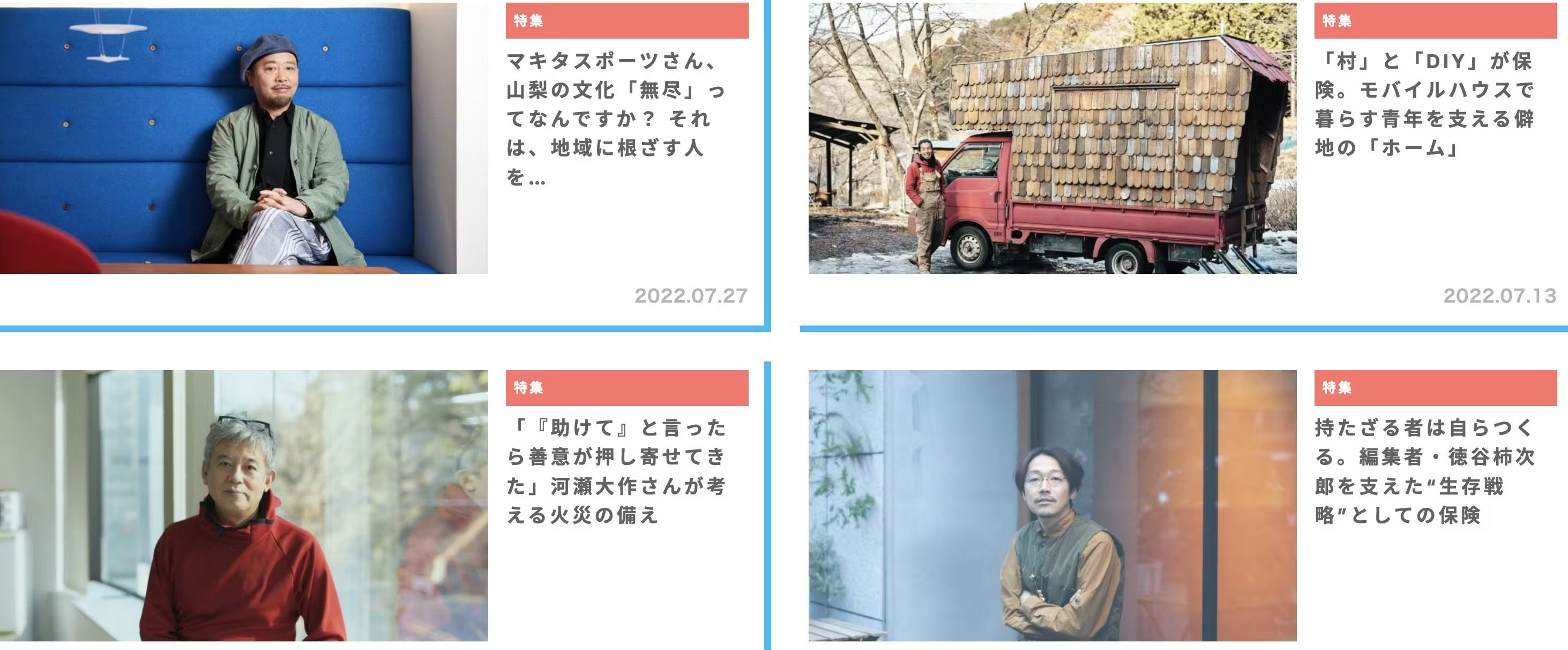 保険テクノロジー企業なのにも関わらず、保険とは「お客さまのありたい人生に対する備え」なのではないか?という社内ワークショップで出た仮説から、時代の先駆者達がどのようなリスクと向き合い、自分なりに備えてきたのかを探る連載。保険も大事な備えだけれど、果たして保険だけで備えは大丈夫なのか?連載を重ねるうちに、リスクとの向き合い方の多様さや課題が垣間見え、リアほとしても保険だけではないリスクとの向き合い方を提供するきっかけとなりました。