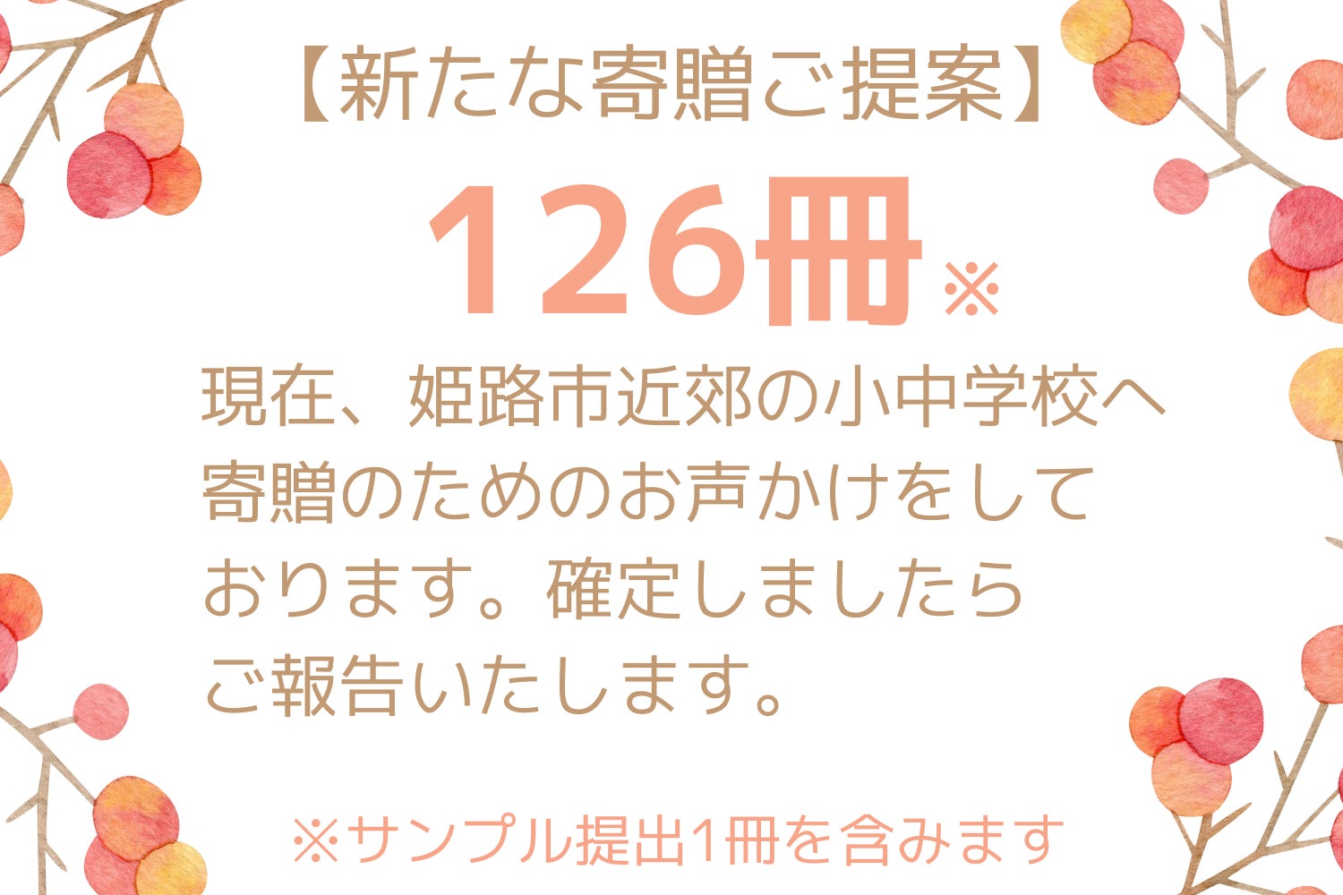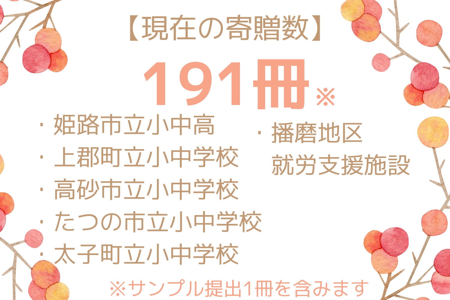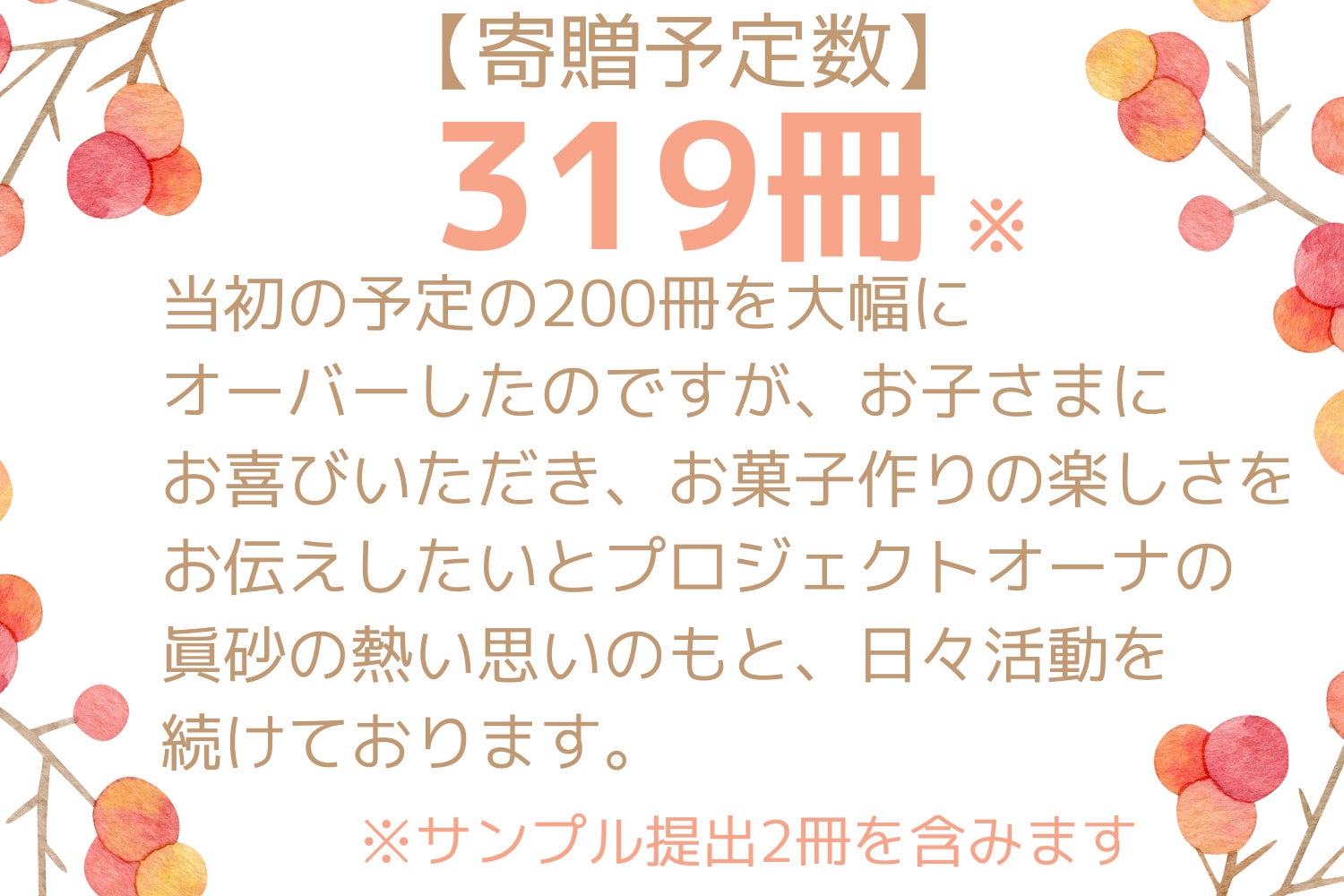 表題の通り、当初200冊を予定しておりましたレシピ本の寄贈ですが