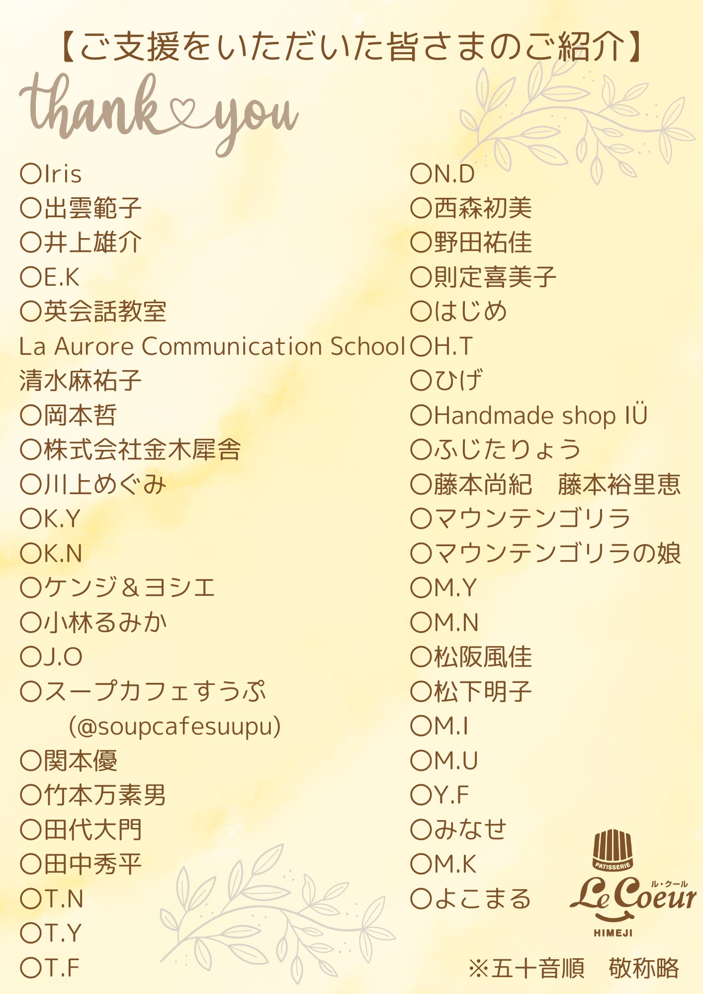 今回のプロジェクトにご支援くださった皆様のご紹介をさせていただきます。