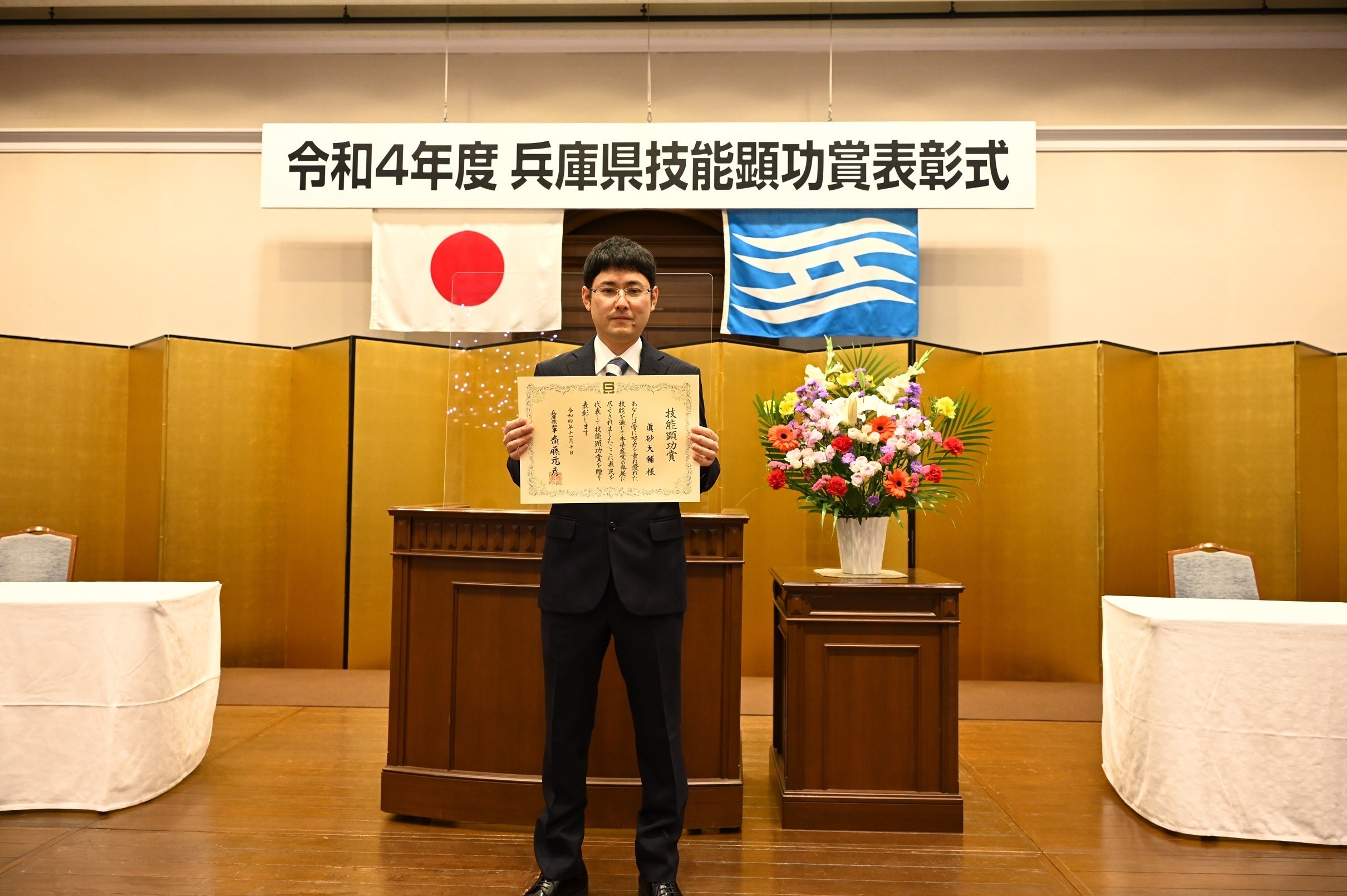 最近の受賞歴といたしまして令和4年度 兵庫県技能顕功賞をいただきました。
