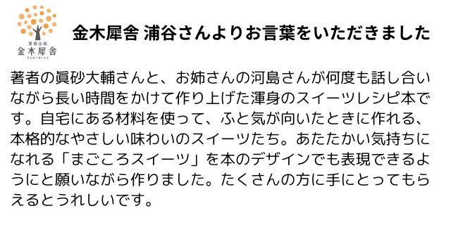 その中に「小中学生がお菓子作りに興味をもてる1冊になるとうれしい。家庭で作れるので