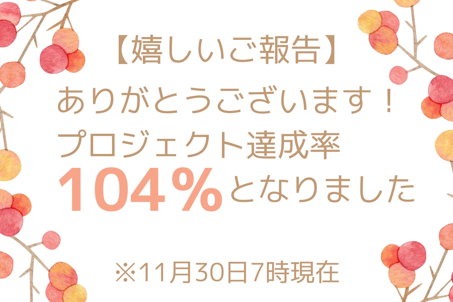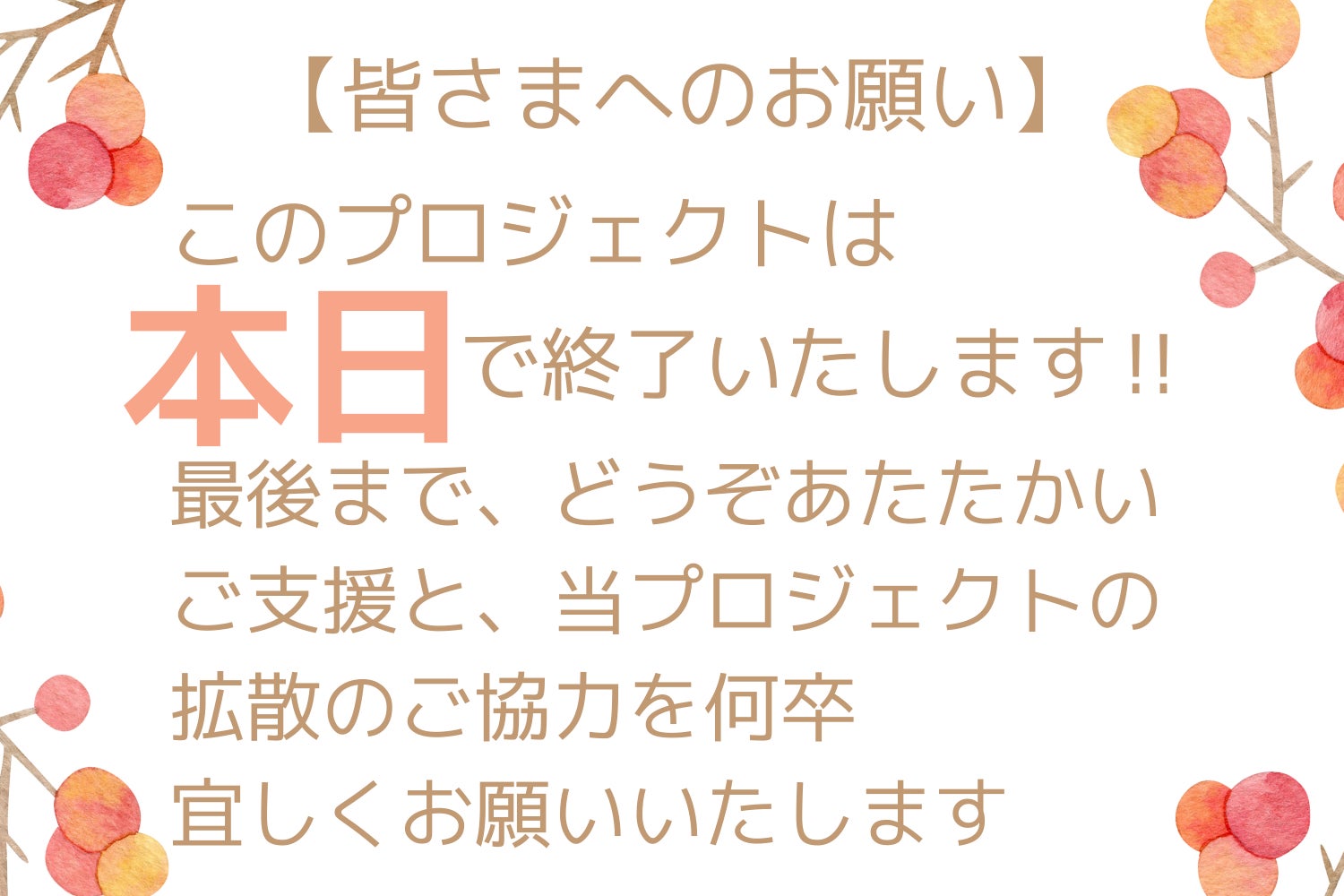 いよいよ本日、11月30日23時59分でこのプロジェクトも終了となります。