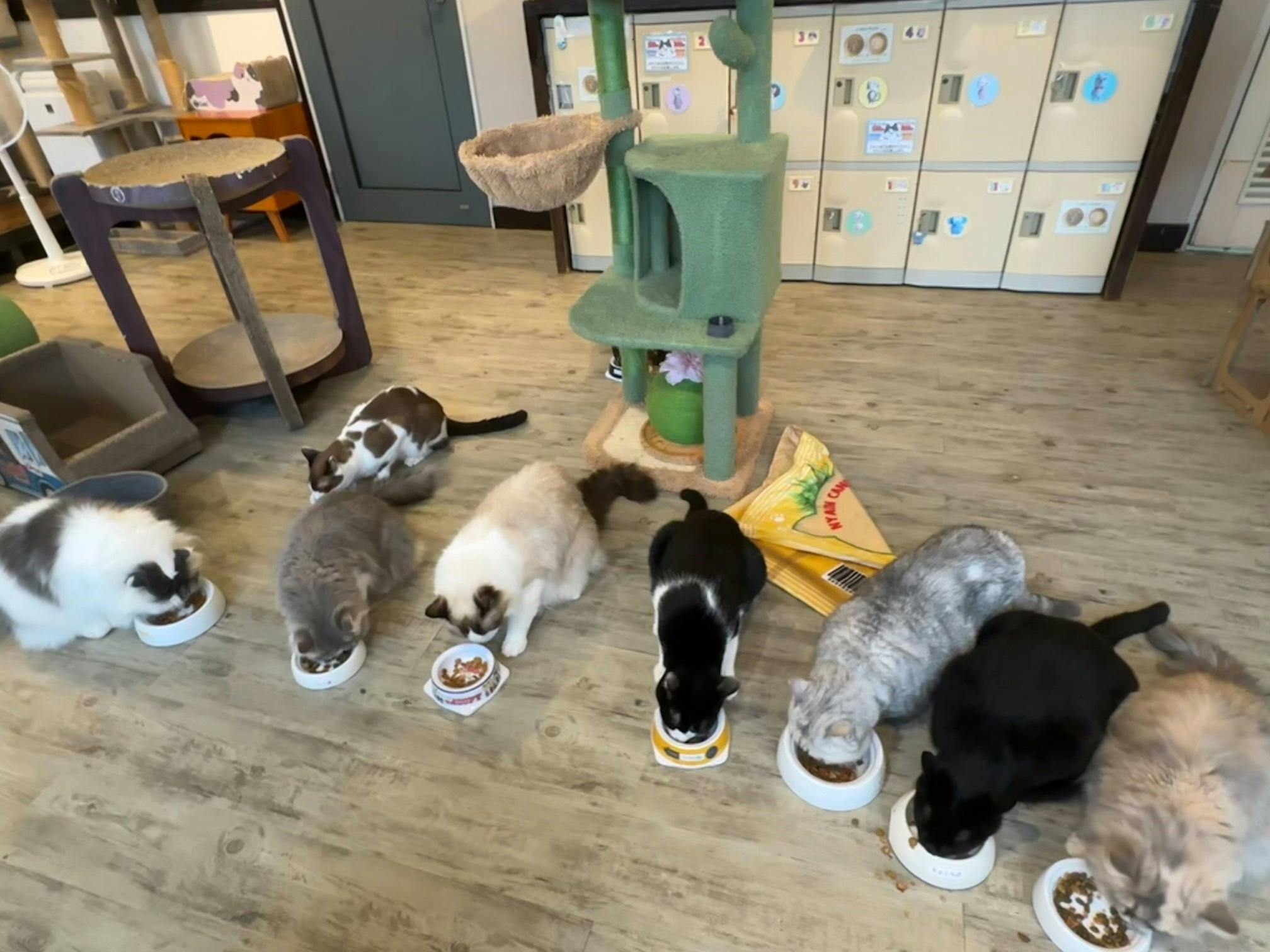 10月4日に猫まる茶屋様にご協力いただき、ruff ruffチキン・そぼろの試食を保護猫ちゃん達にお願いし、撮影させていただきました。
