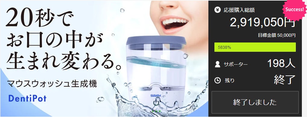 ※リターン品の配送が完了するまで、From AakはDentiPotの日本における独占販売権を有する正規代理店です。詳細に関しては、ページ下部のリスク&チャレンジをご確認ください。