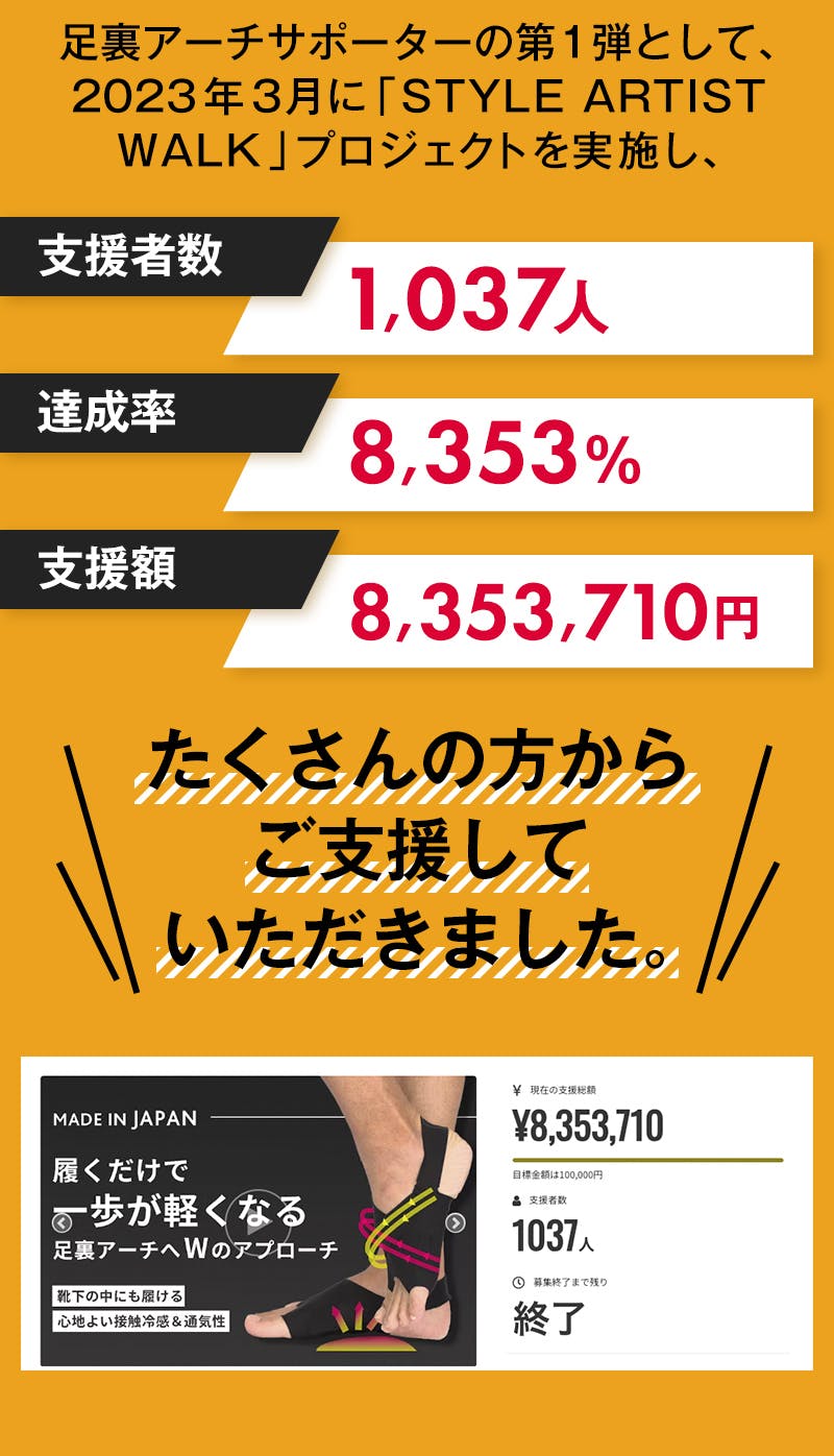 2024/01/30 09:21サポーターの皆さま、いつもお世話になっております。appreciaです。この度は、ご支援いただき、誠にありがとうございます。「仕事中も筋トレ!履くだけで筋肉使用量が141%UPする足裏サポーター」https://camp-fire.jp/projects/view/707343皆さまの応援のおかげで、プロジェクトの達成率が6600%を超えました!本当にありがとうございます。こちらのプロジェクトも終了まであと1日を切りました!おかげさまで好評いただき、残りのリターン(サイズ)も限られておりますが、ぜひ最後までご支援のほどよろしくお願いいたします! もっと見る