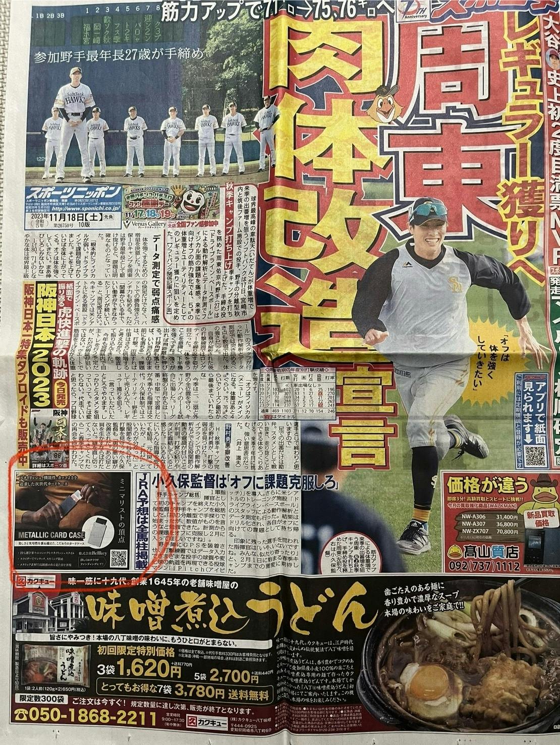2023/12/29 14:19この度、スポニチの表紙部分に掲載させていただきました!残り僅かではございますが、ご支援いただいた方々に感謝し少しでも多くの方に広めていきたいと思います。 もっと見る