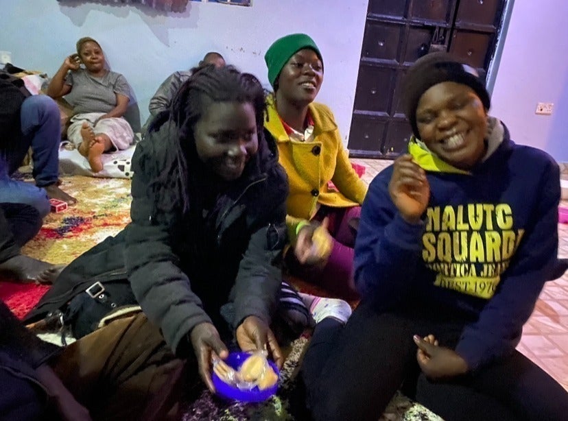 しかし、たどり着いたケニアのカクマ難民キャンプでも、LGBTQIA+は暴力の標的となります。モーゼスは、人命保護と生活改善を求めて、デモや世界の難民キャンプ史上初となるプライドパレードを行いました。その結果、2018年に数百人単位でのナイロビへの移住が認められました。ようやく安全な暮らしができると思いきや、しばらくすると住居支援、食料支援は打ち切られ、多くのLGBTQIA+難民が路上に投げ出されました。ホームレスとなり寒さ(ナイロビは海抜1800メートルの高地にあり、寒い季節の最低気温は10度以下まで下がります)と犯罪の恐怖に震えながら物乞いをして生き抜きました。そして、うち何人かがお金を集めてスラムに家を借りました。それがFHIのシェルターの始まりです。