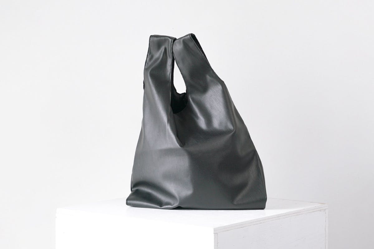ゆるやかなカーブの裁断と斜めにとったマチが、しなやかな質感の生地とあいまって、