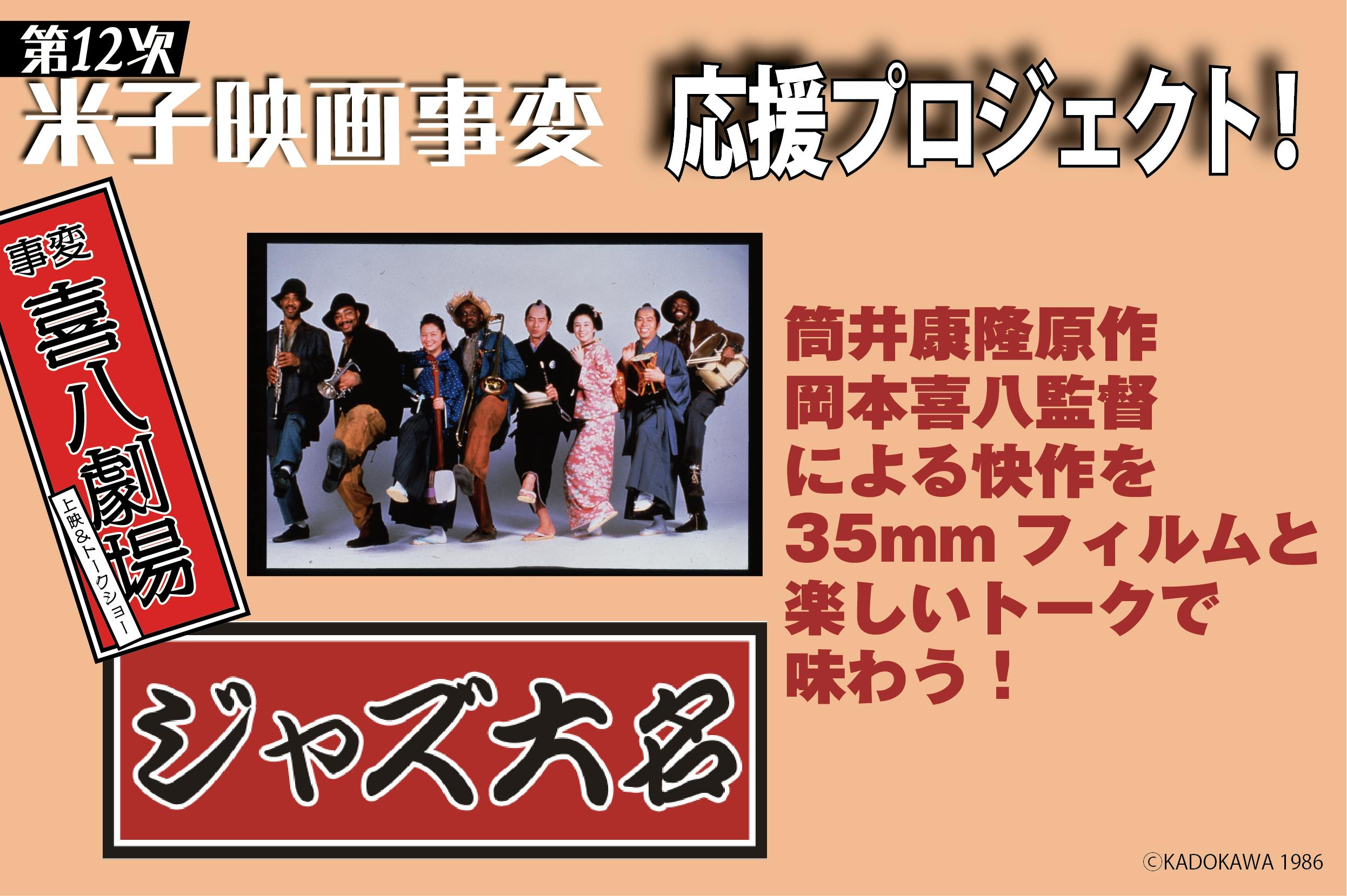 米子市出身の岡本喜八監督作品を35mmオリジナルフィルムで味わう「事変喜八劇場」では、1986年公開の名作「ジャズ大名」を上映。