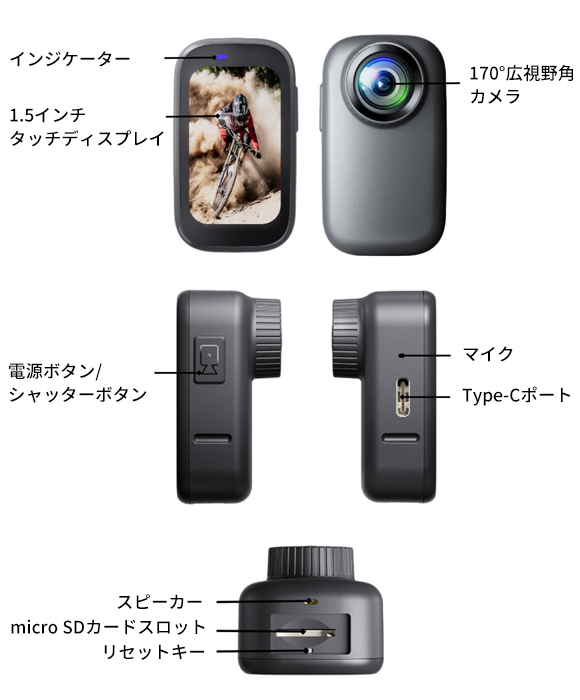 クリップケースを装着すると、服やバッグにクリップで留めることができ、スポーツカメラとして使用することができます。
