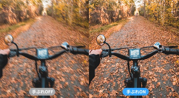 3軸強化手ぶれ補正は、縦軸(上下の揺れ)と横軸(左右の揺れ)と回転軸(画像の回転)の補正も行うことができます。