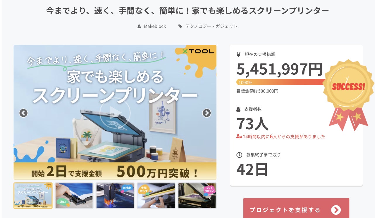 お客様のご愛顧により、たった2日で支援額500万円に到達しました!
