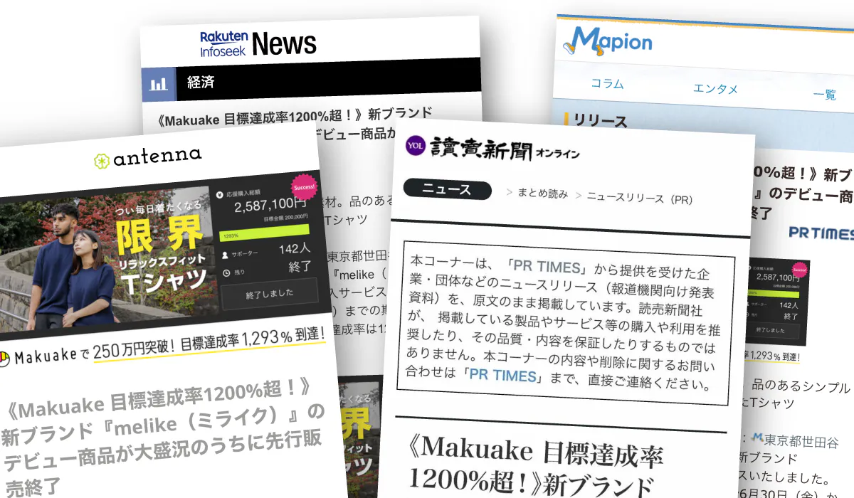 初回リリースする商品をクラウドファンディングから資金を募ったところ、目標達成率1293%と順調な滑り出しでブランドデビューすることができました。