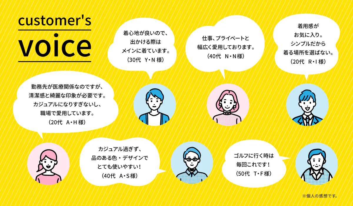 幅広いシーンに合わせて心地よい着用感があるから、きっとコーディネートでは「つい毎日でも手が伸びてしまう」。あなたの「第一候補」としてご愛用いただけるはずです。